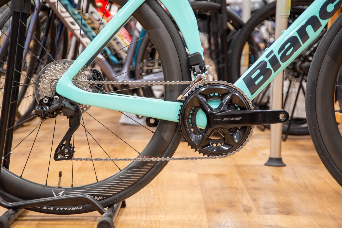 リーズナブルで絶大な人気を誇るセミワイヤレスコンポーネント「SHIMANO 105Di2」を搭載しています。
