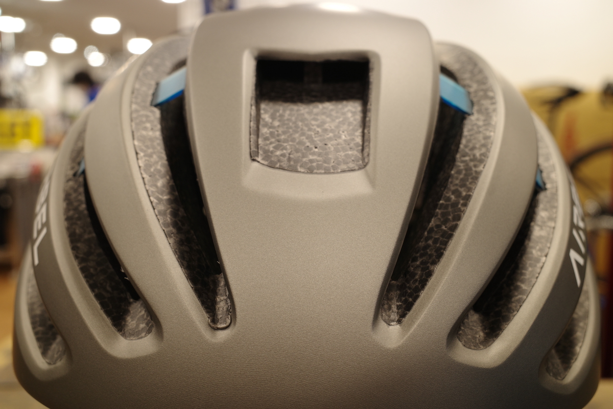 またヘルメット中央に空いた「エアトンネル」により、ヘルメット内部の熱を外に放出。熱のこもりを軽減します。