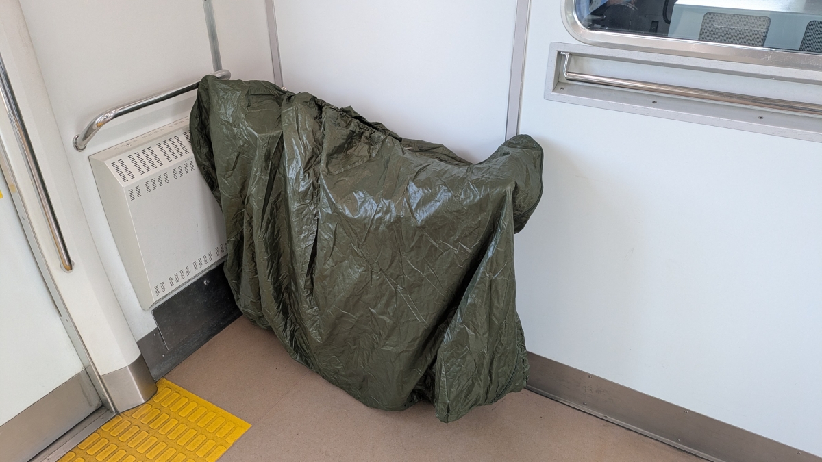 電車内に置いても先頭or最後尾の壁際なら邪魔になりにくいと思います。