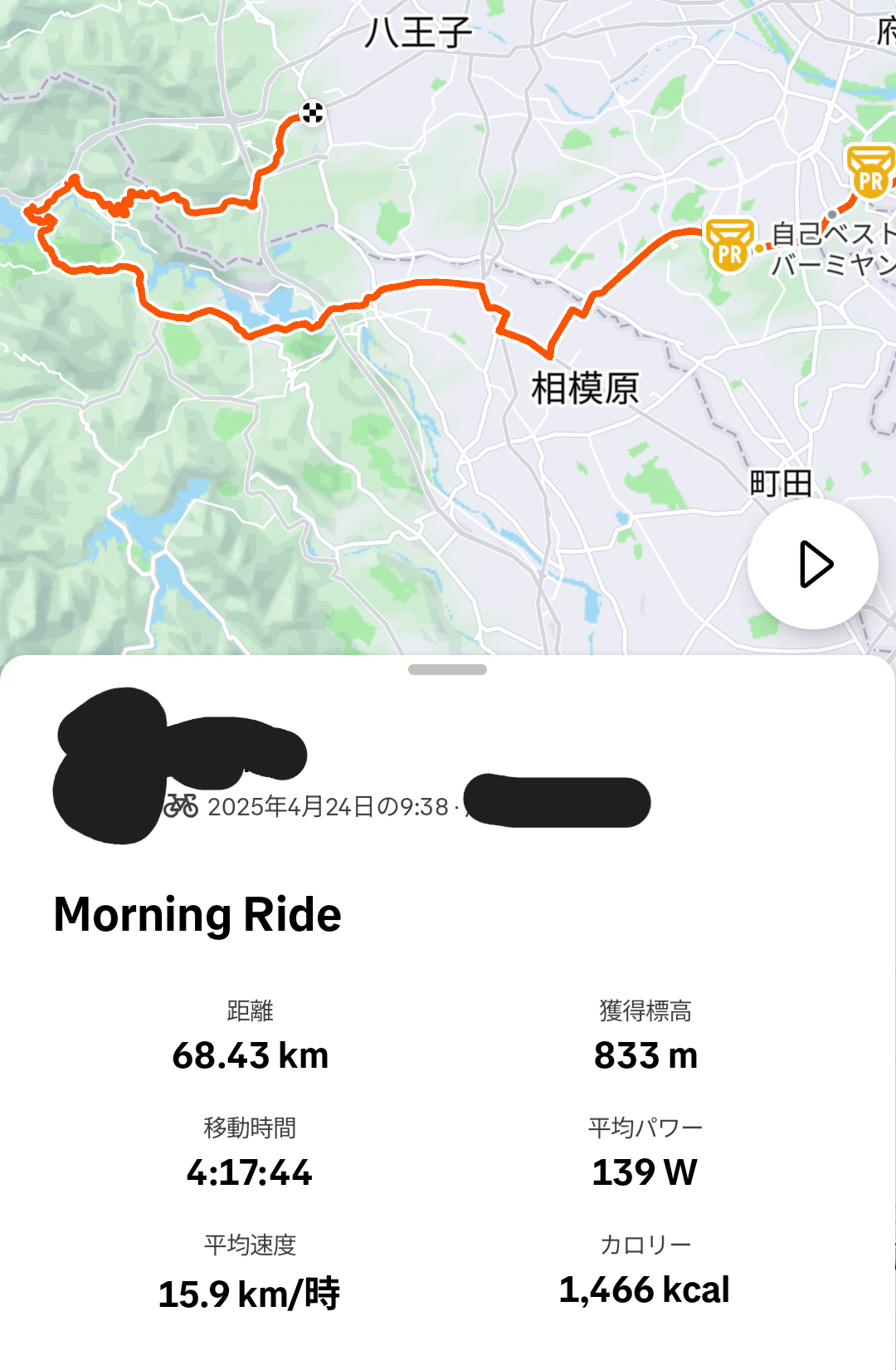 そこから相模湖を経由して神奈川県と東京都の境目にある大垂水峠を登って帰りは高尾駅から輪行で帰ります。