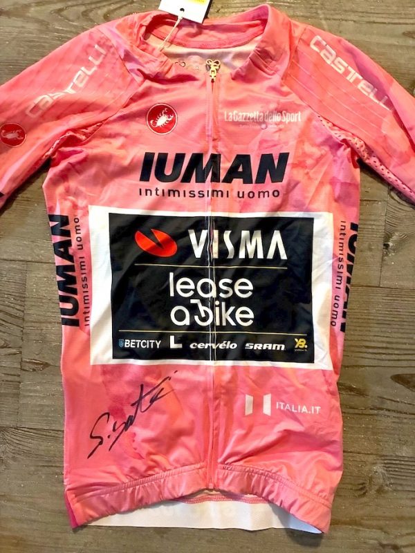 当初は、無地のジャージにサインが入る予定でしたが、IUMANスポンサーロゴと、VISMAのチームロゴ入りのレプリカ仕様に変更になりました!
