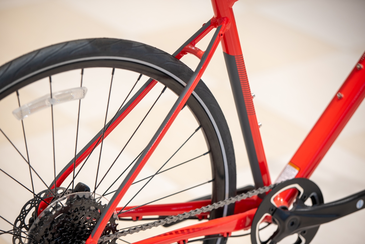昨今増えているフロントシングルにリア特大ギアと流行りに乗ったフィットネスバイク。同社が誇るアルミ成型技術を採用し通勤・通学から休日のサイクリングまで走行シーンを広げています。