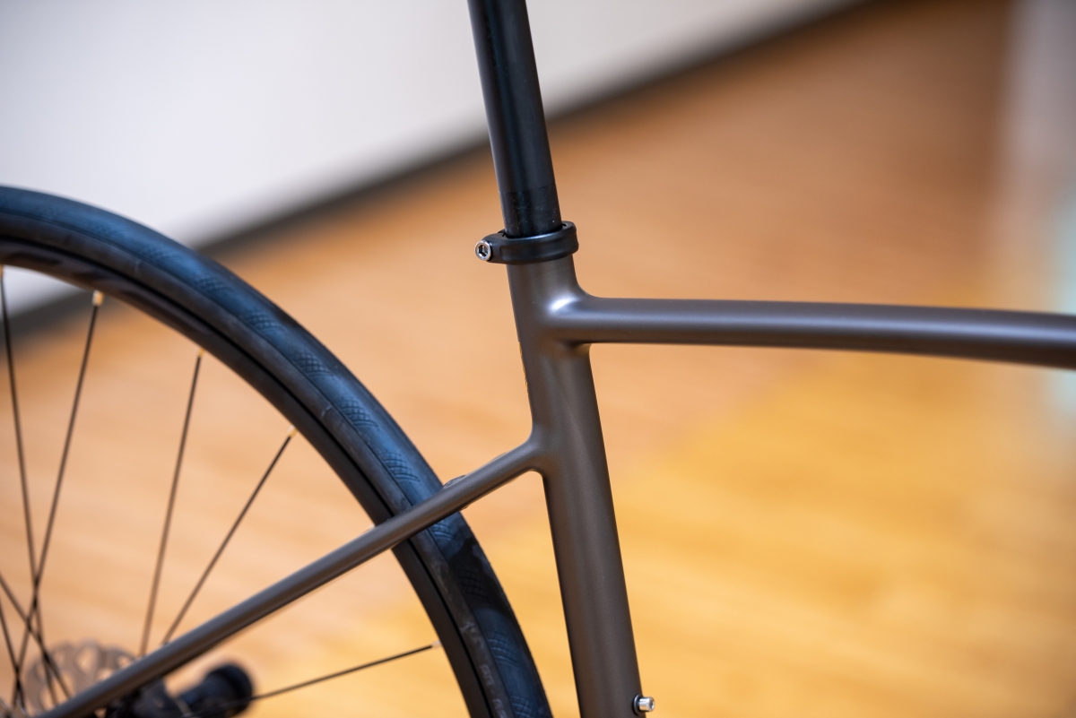 トップチューブから少し下に配置されたシートステーは振動吸収性の向上は勿論のこと、空力性能も良くなっていそうな流行りのフレームデザインを採用しています。