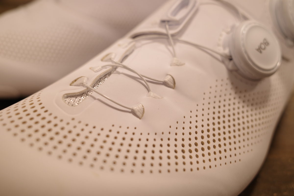 フラッグシップモデル「RC903」の機能を色濃く受け継ぐ「RC703」。前モデルで採用されていた、つま先部の樹脂パーツを廃止し「RC903」同様にロープロファイルレースガイドを採用、フィット感を向上させています。さらに通気穴も前モデルから大幅に増やし、高い通気性を実現しています。