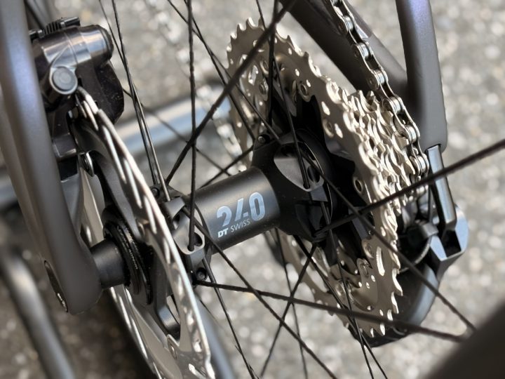 ハブはDTの240に、ハイトは40mmで重量は1355gと超軽量。