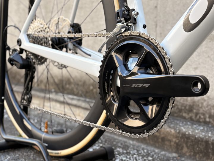 ハンドルはカーボンで、バーテープはprologoの一番良いやつ入れてます。