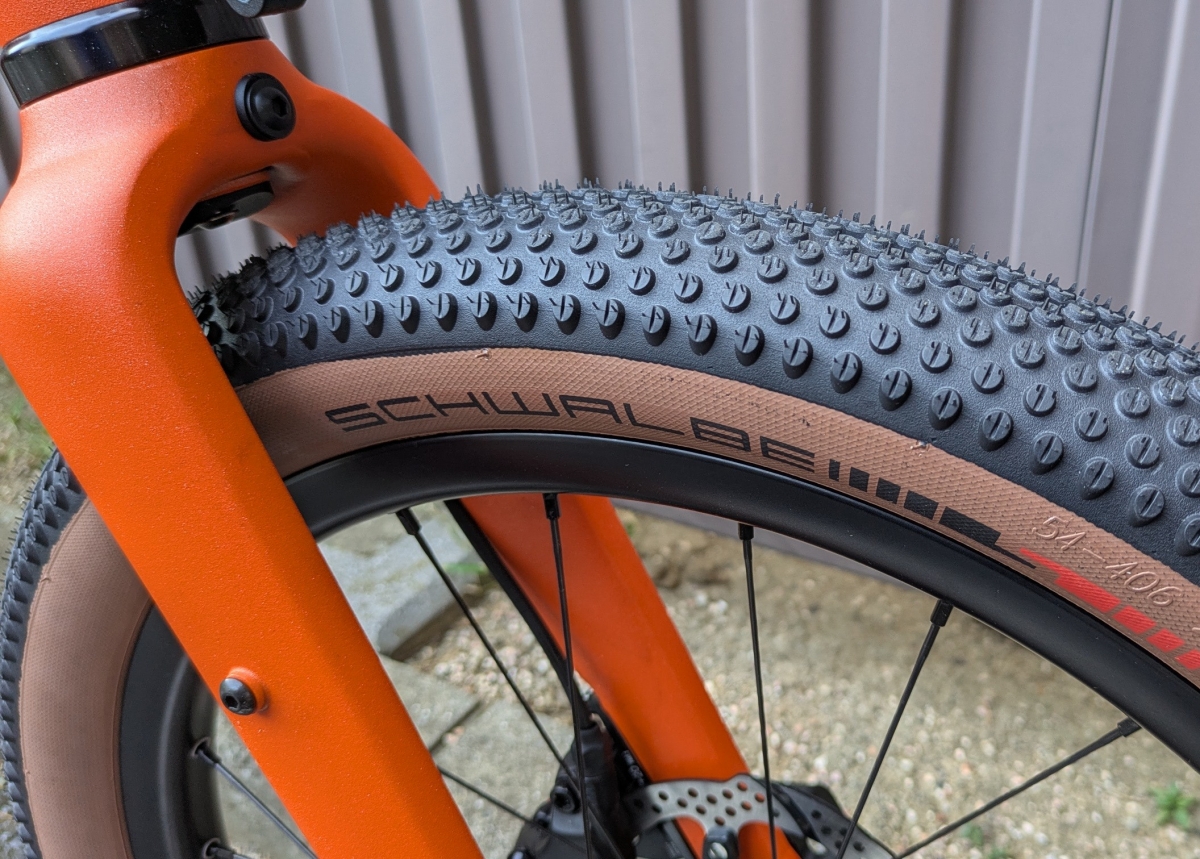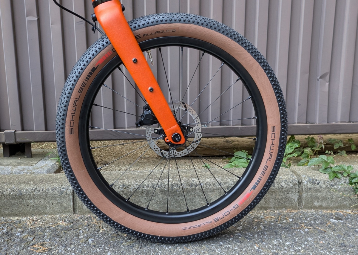 タイヤのモデルはSCHWALBE社のG-One Allroundを履いており406規格の幅54㎜となっています。