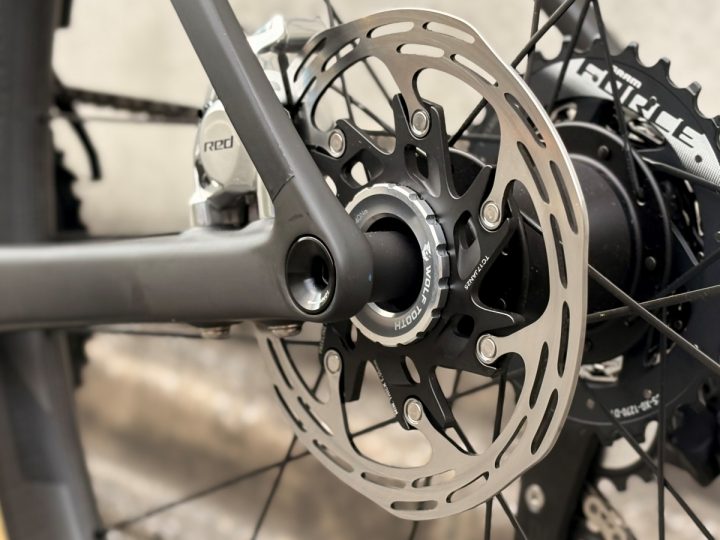 アクセントにディスクローターのロックリングはシルバーで。