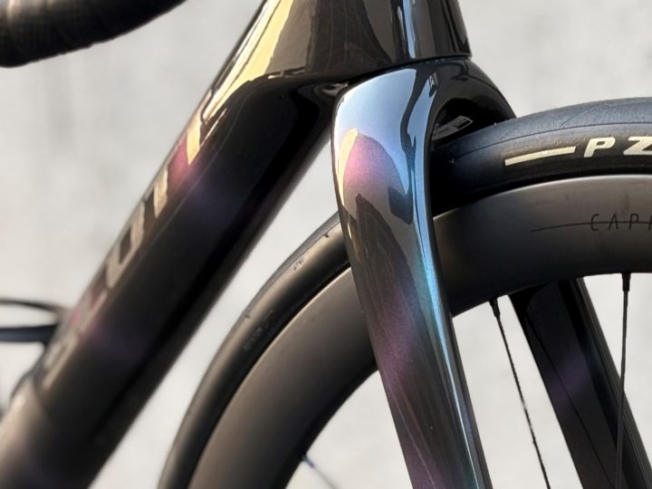 これがまた完成車にアッセンブルされているホイールとは思えないほどハイスペックでリムは内幅25mm、ハブはDTの240、リムハイトは40mmで1335gと超軽量。