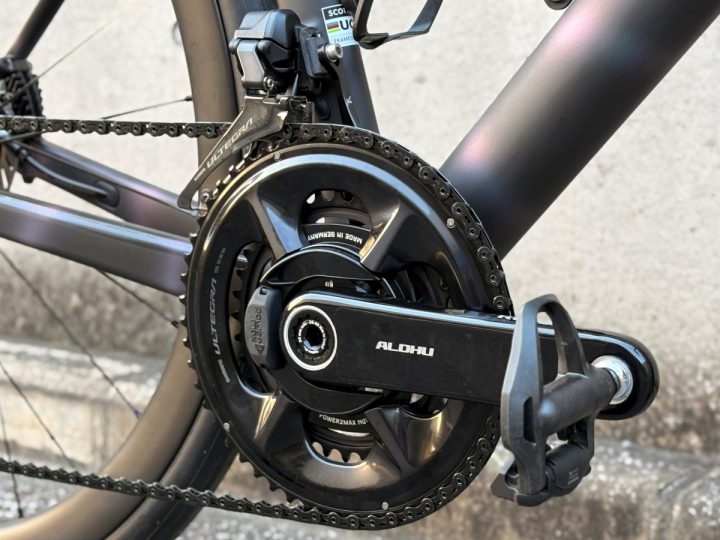 1ピースハンドルとクランクを除けば特別な軽量化はしていないですし、パワーメーターも取り付けてこの重量ですからね。