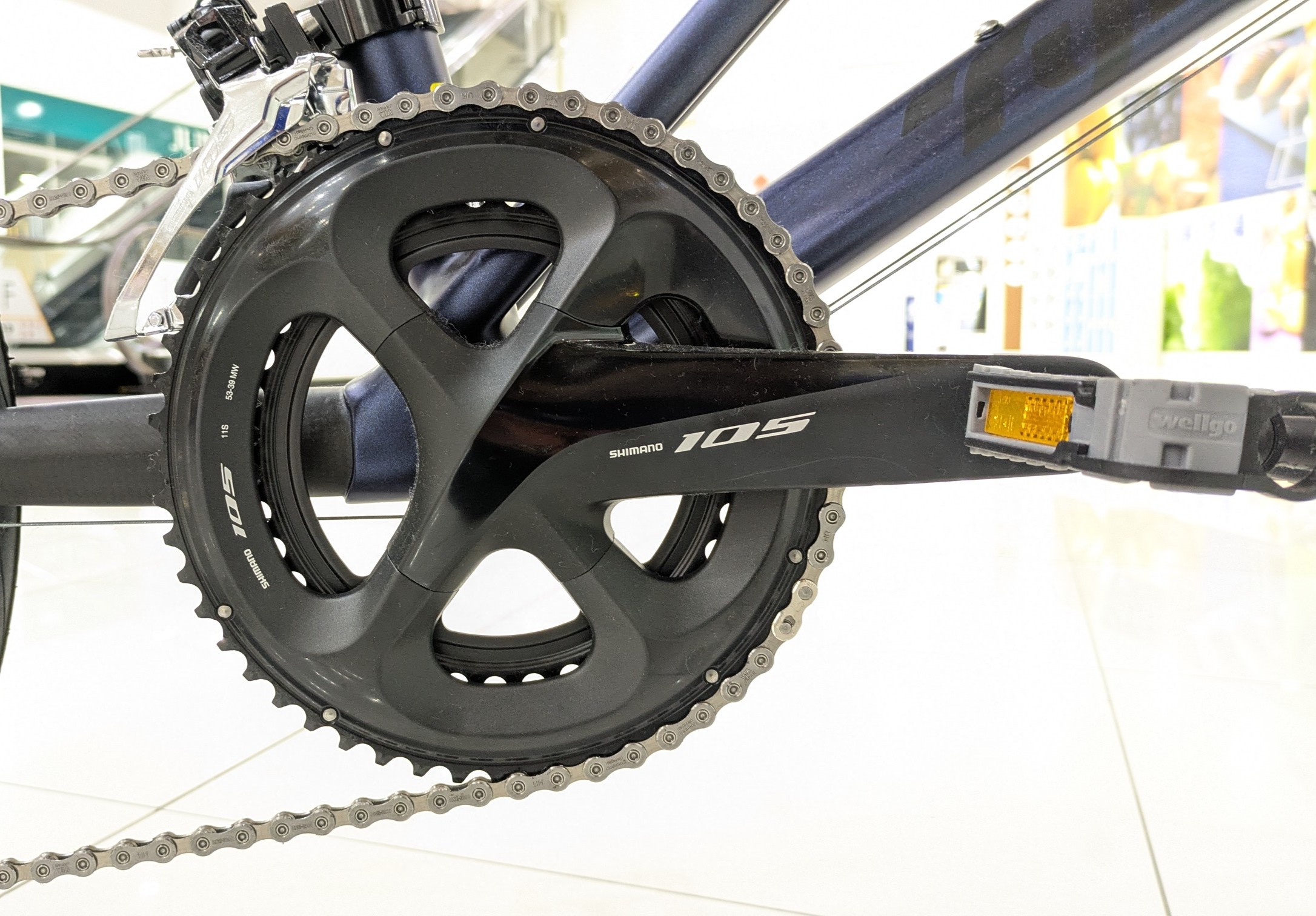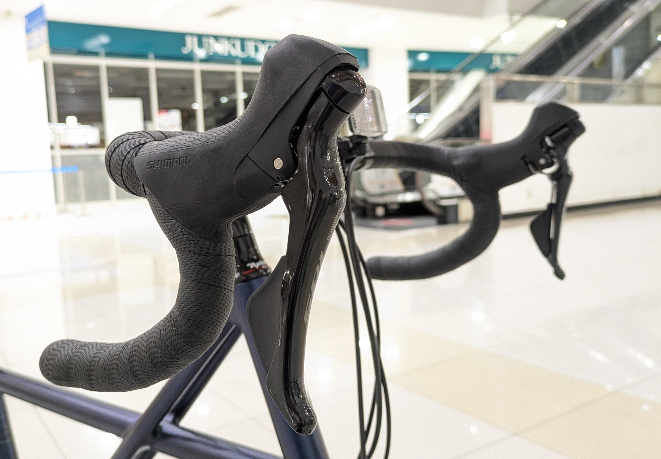 コンポーネントは主にSHIMANOの105が付いておりハンドルの周りを見ればロードバイクと見間違えてしまうでしょう。