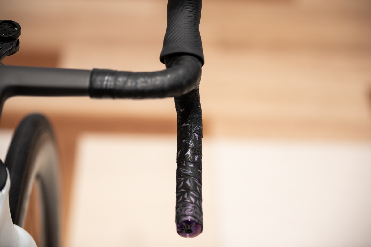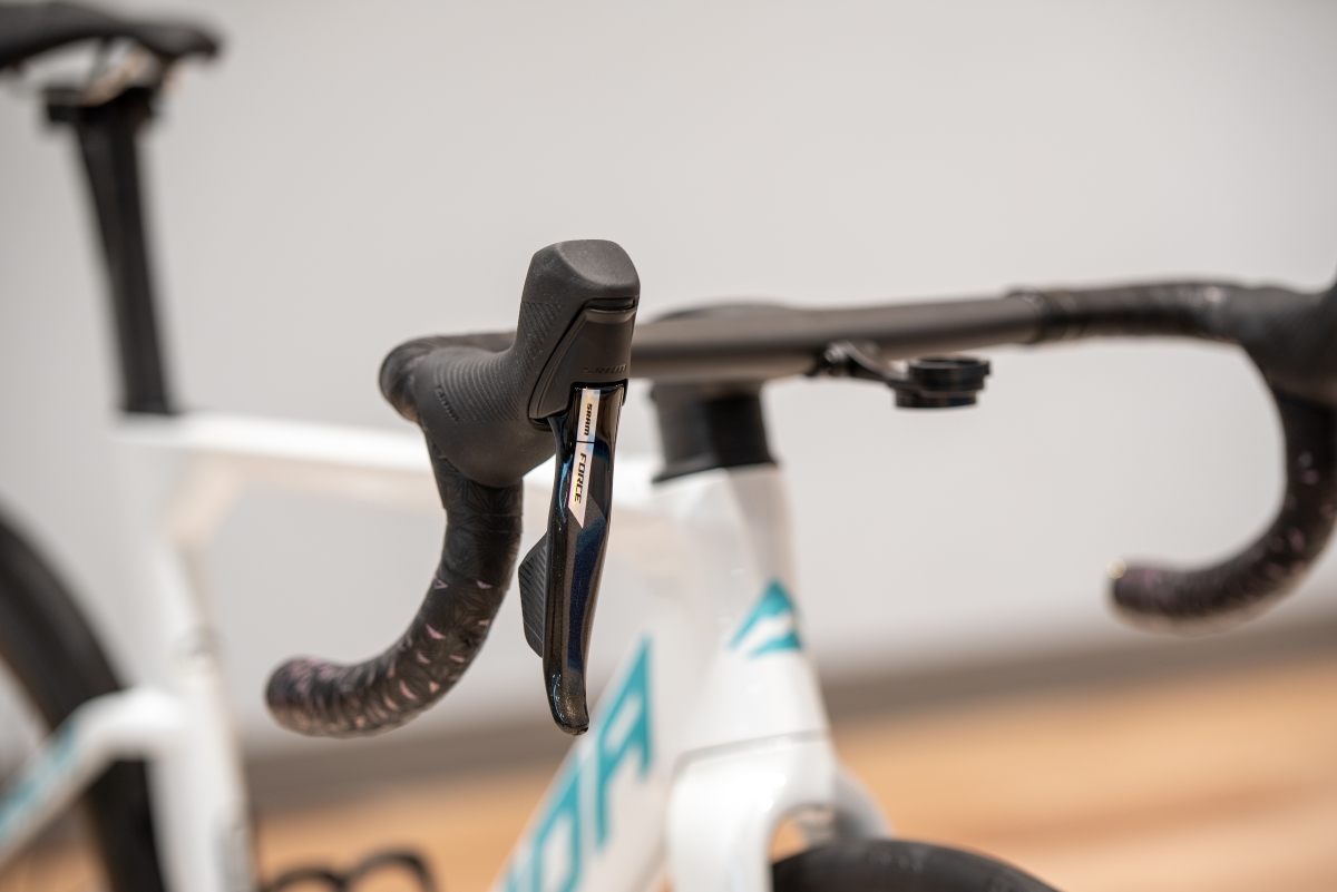 一体型ハンドルの「Team SL 1pCockpit」を採用。ワイヤーは完全内装となりエアロフレームに相応しい仕様となっております。上ハンドルが扁平したエアロハンドルに比べて握りやすいので個人的には魅力の一つ。