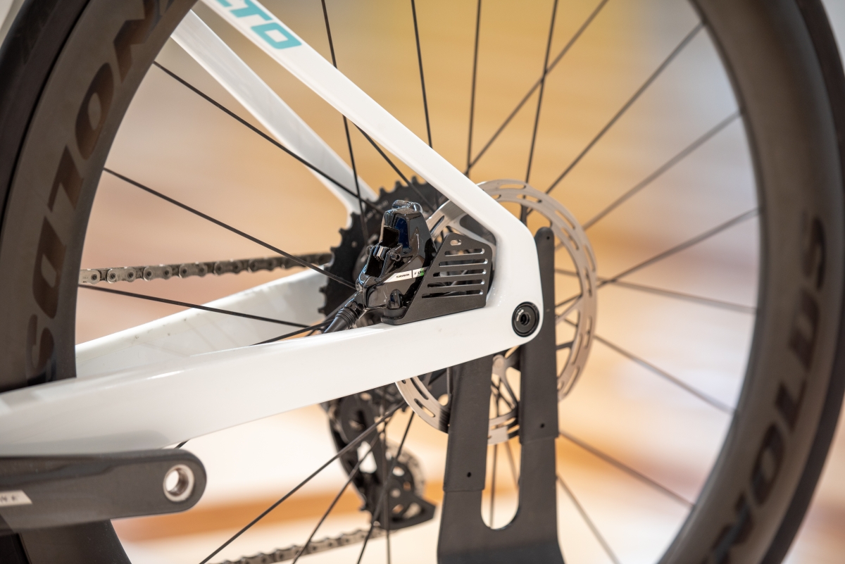 実際に重量を計った訳ではありませんが、ディープホイールを搭載しながらも車体を持ってみると軽さを感じます。多くのエアロフレームの中でも様々な走行シーンでアドバンテージとなることでしょう。