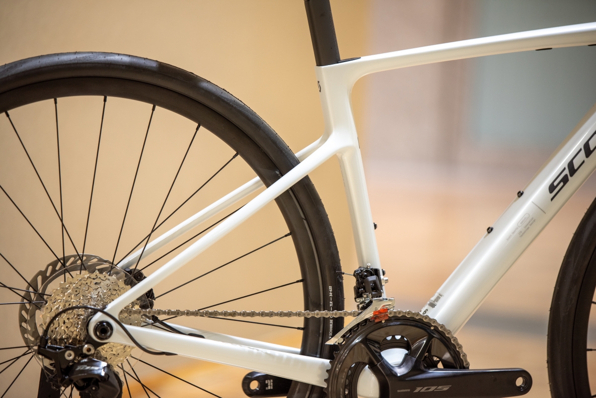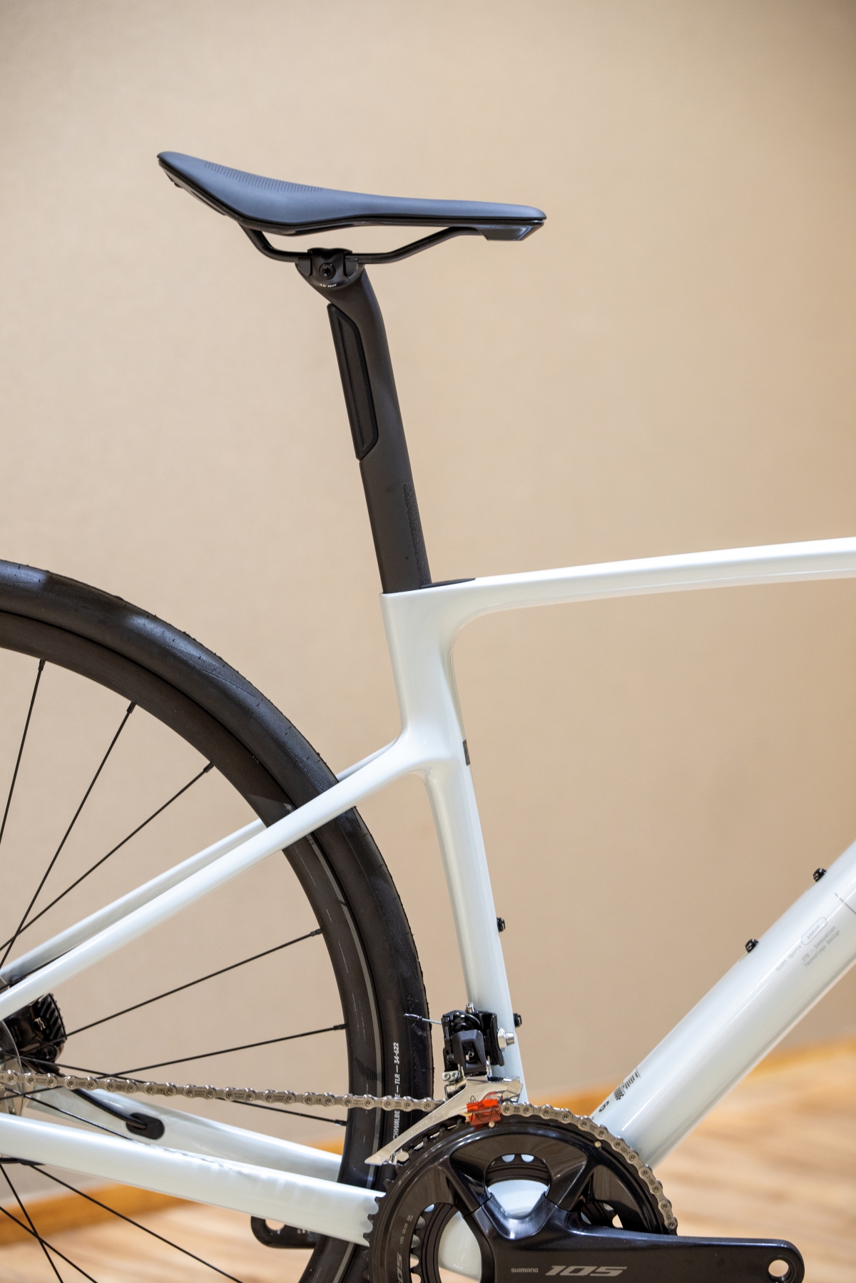 従来と比べてヘッドチューブはややシェイプに、シートチューブ~シートポストにかけてフレーム設計を変更することで快適性がアップ。エンデュランスバイクとしての立ち位置を維持しつつも、空力性能や軽さといった走行性能も考慮されたフレーム設計はミドルレンジの中でも数少ないため今後期待の持てるモデルとなっています。