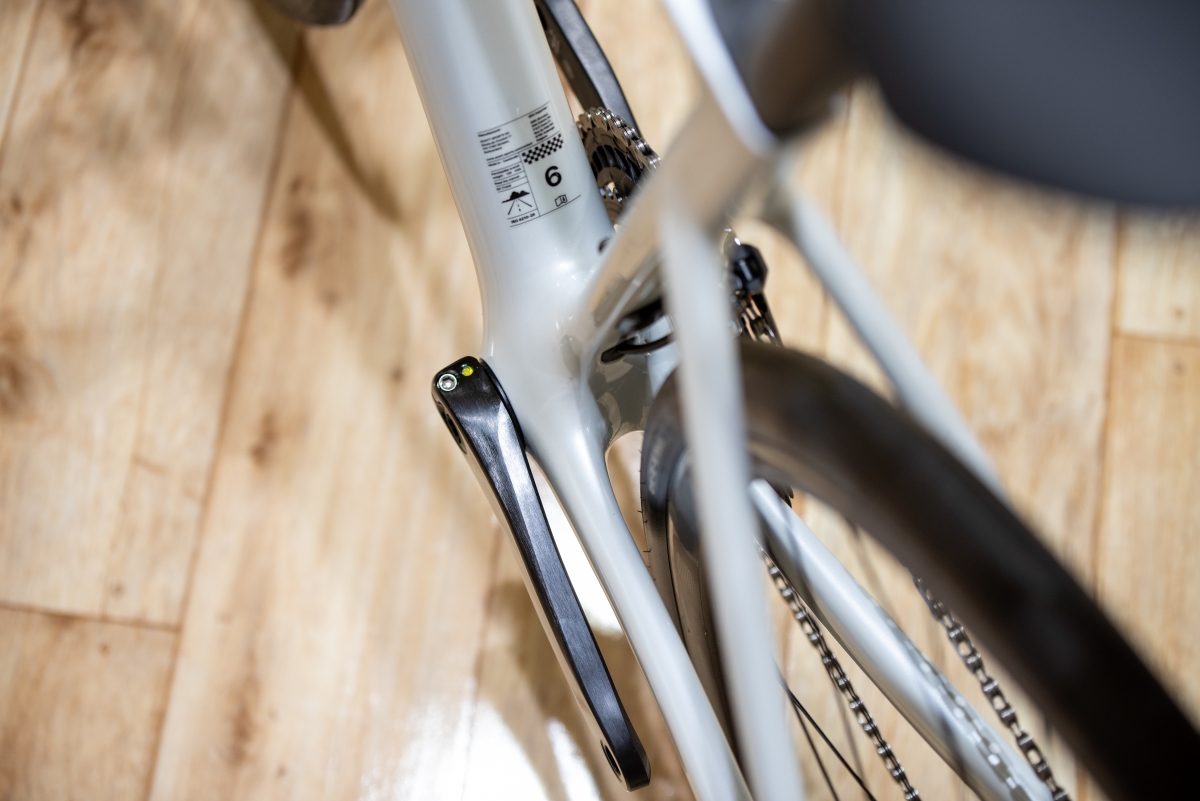 反応性や空力、快適性といった要素を重要視されたリアトライアングル。最大タイヤ幅は700×38Cまで適応できる器の大きさを持っています。