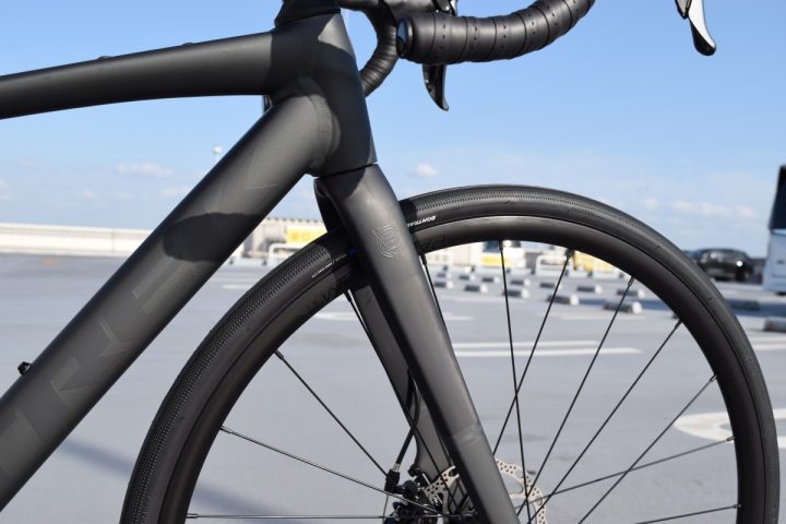 フォークはコラムまでカーボンになっており、フロントまわりがかなり軽いです。