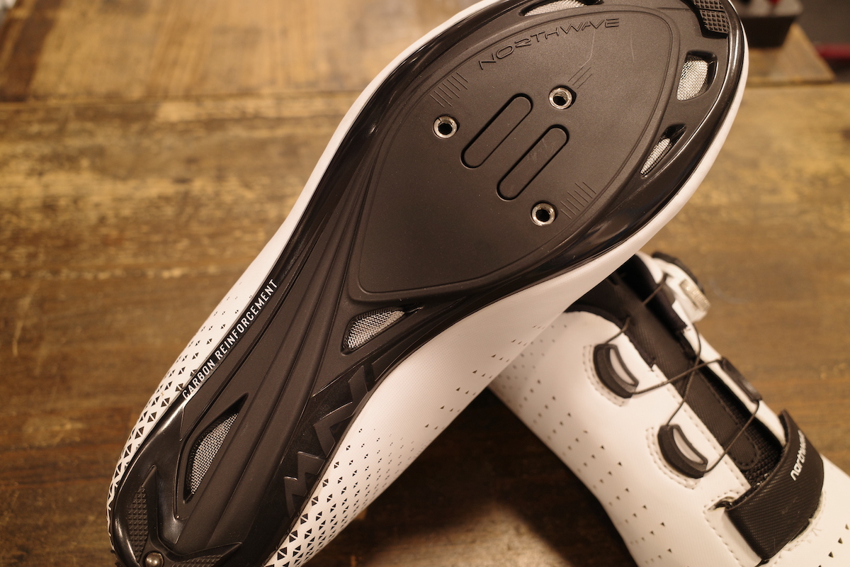 適度な剛性のNRGエアカーボン強化ソールを搭載し、ロングライドやトレーニングなどで効率的なペダリングを可能にします。