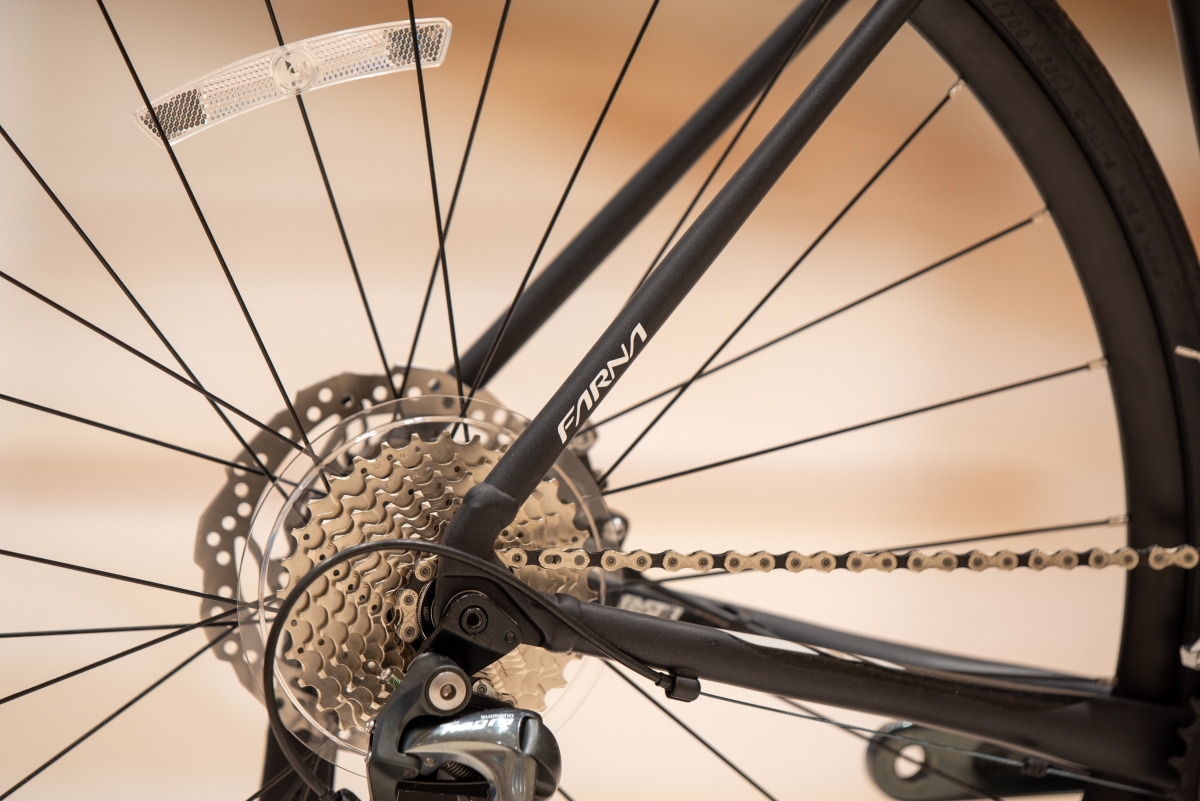 フレームの素材はアルミですが、トリプルバテッド(内部の厚みが3段階に分かれている)になっており、軽量なつくりになっています。