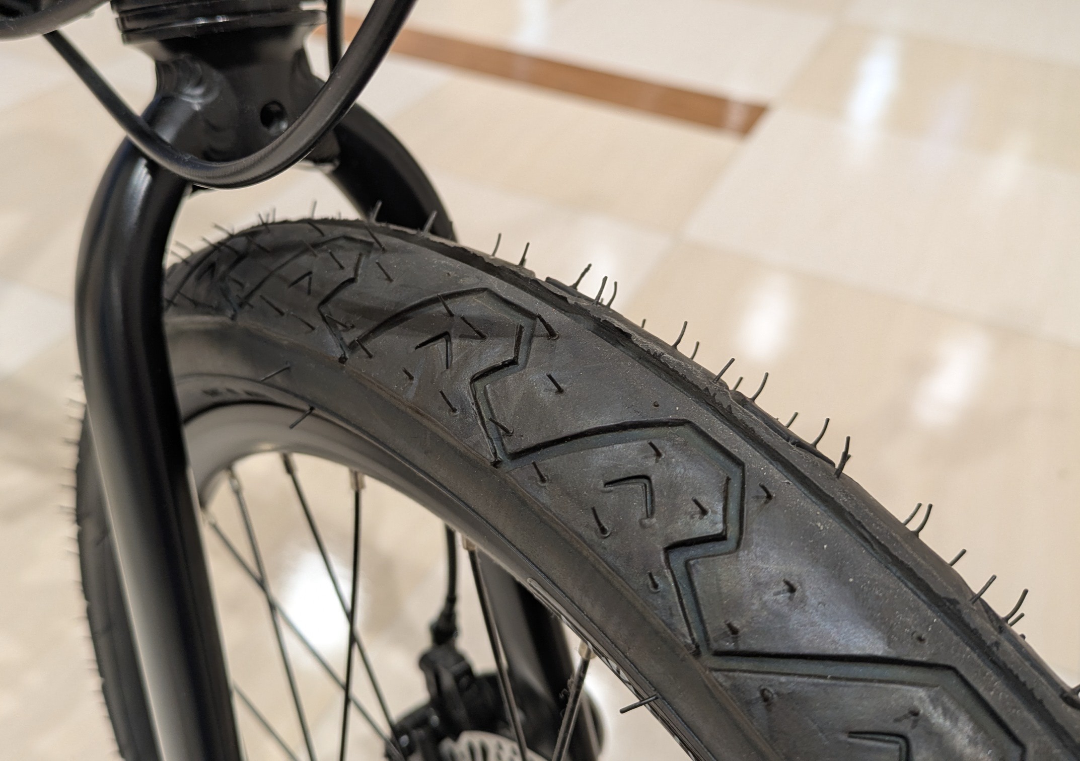 タイヤサイズは406規格でサイズは20×1.9とクロスバイクと比較しても太めとなっています。