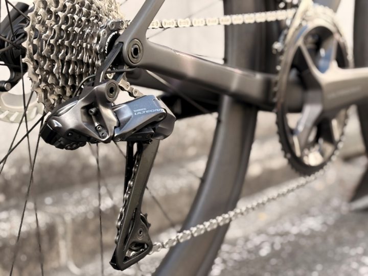 その当時のフレームとしてはかなり進んでいて軽量かつエアロ、さらにダイレクトマウントハンガーや30Cタイヤを採用していました。