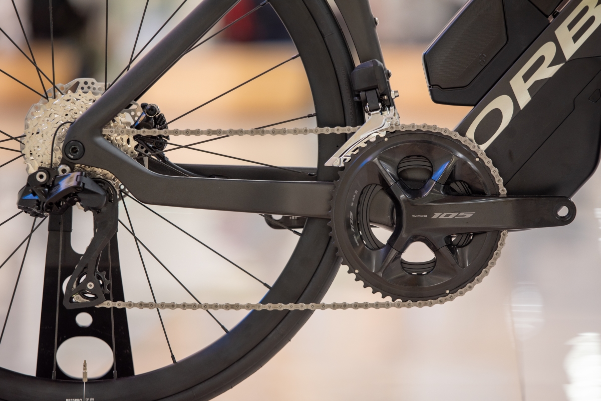 信頼性と実績を誇るSHIMANO 105Di2を搭載。軽いタッチでの変速が可能で機械式変速に比べてロングライド時の疲労軽減に貢献。STIレバーがワイヤレスになっていることでブレーキホースのみなのでぱっと見はハンドル内装に見えてしまうほど。
