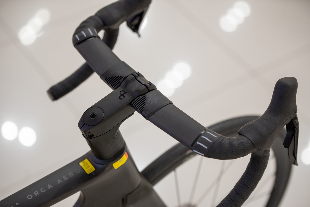 ハンドルは扁平したエアロハンドルを採用。ワイヤーはハンドル下からステム下を通ってフレーム内に入る仕様となっています。