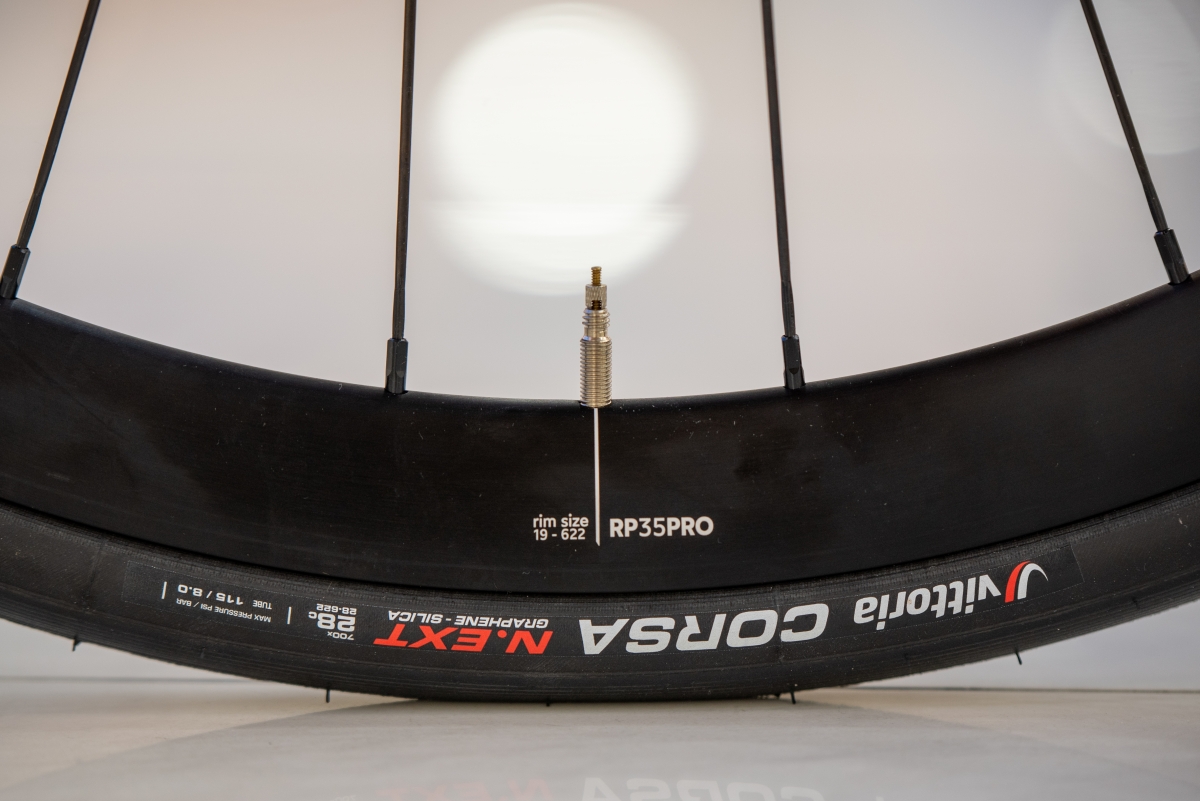 リムハイト35mmとアップダウンのある走行シーンにも適応。重量は1,870gとやや重めですが、ハブにはZIPP ZR1を採用する事で漕ぎだしの軽さやコーナー立ち上がり時の反応性の向上を実現。