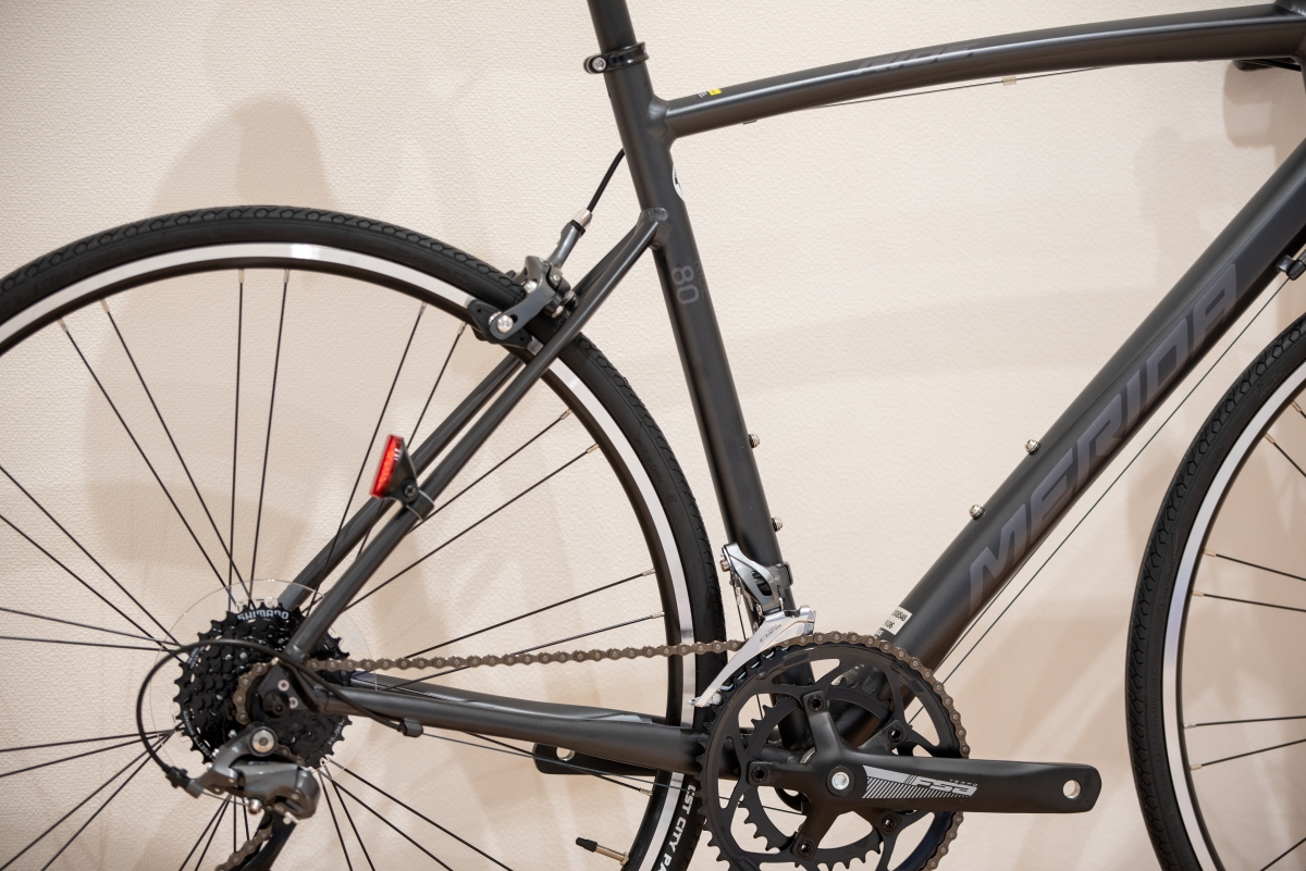 今回ご紹介するMERIDA RIDE 80は、同社が「ロードバイクを始める人」向けに展開するエントリーロード。アルミ製フレームに、走りの質を高めるためにカーボンフォークを搭載。仕様的にも “ロードらしさ” を保ちつつ価格を抑えたバランスモデルとなっている。