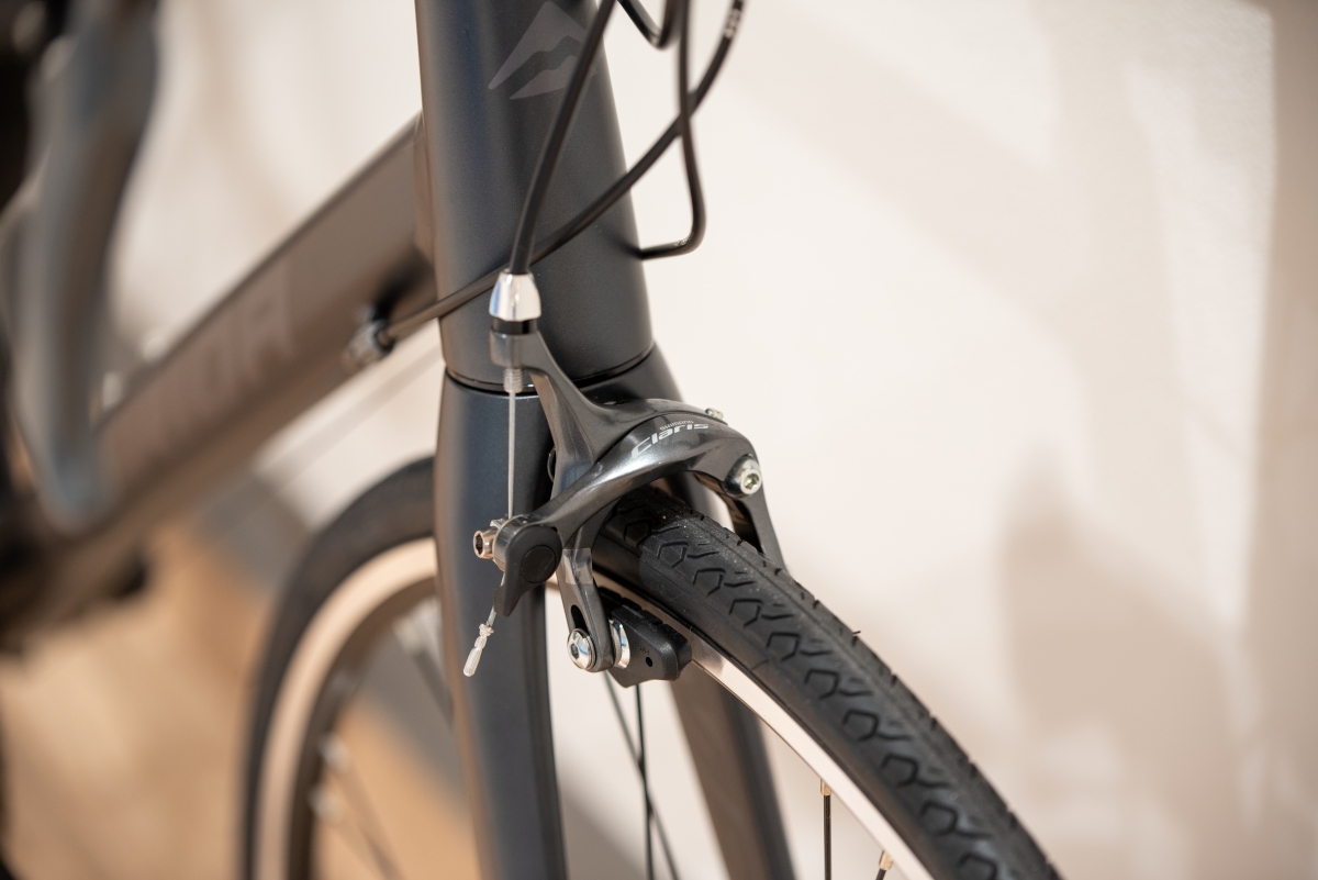 完成車重量が約9.6kg(サイズ44cm/XS)ということで、エントリークラスとしては軽め。拡張性も考慮されており、将来的にタイヤやホイール交換など楽しみを持てる仕様。