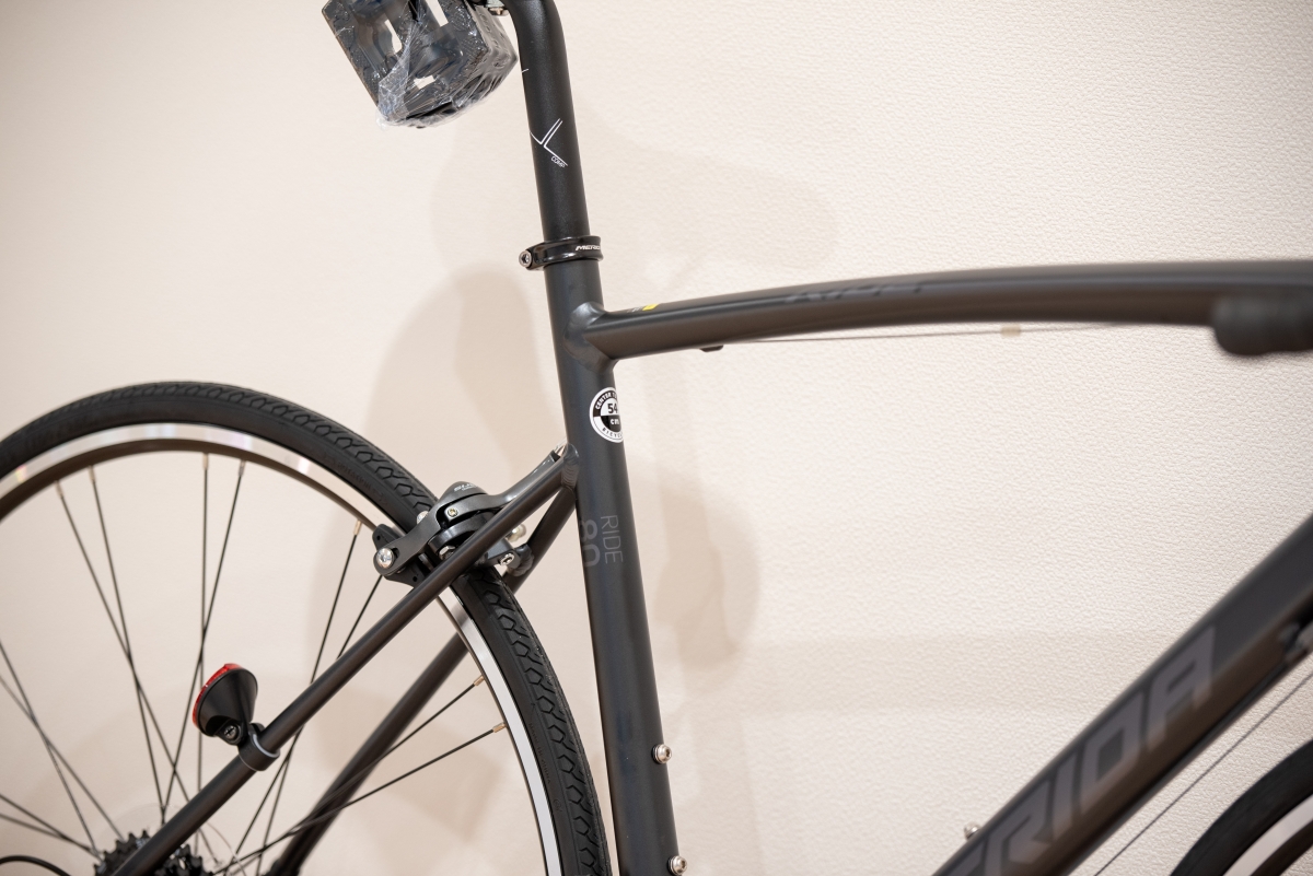 RIDE 80では、耐久性とコストパフォーマンスに優れたアルミフレームをメインに採用。フォーク部分にはカーボン素材を使用することで、振動吸収性の向上や軽量化を実現している。