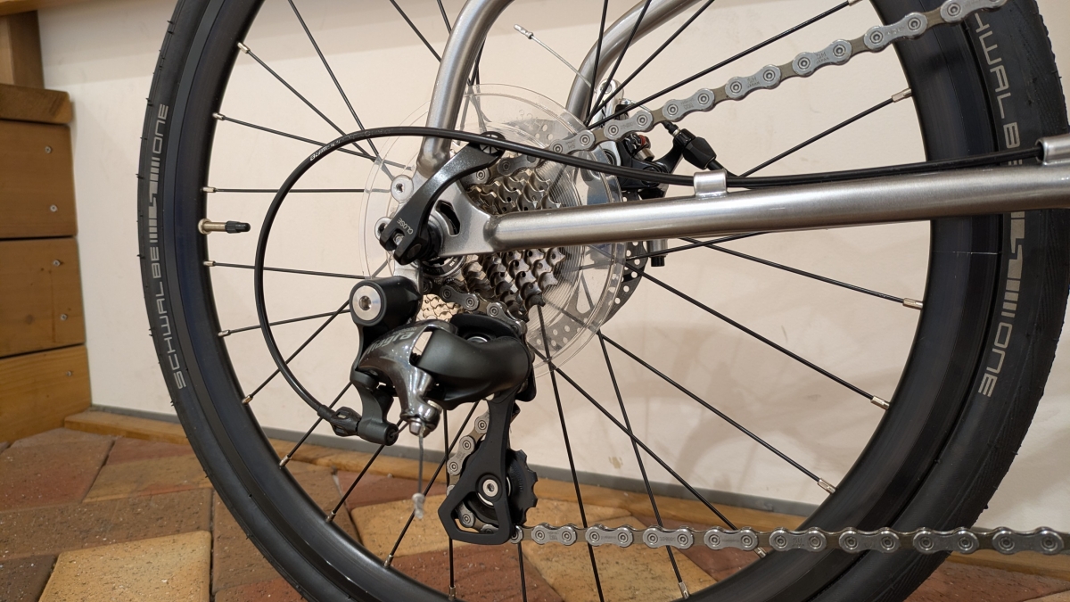 クロモリフレームの特徴ともいえる優しい乗り味を活かしながら、20インチのタイヤ径でゆっくりとした漕ぎ出しができるでしょう。