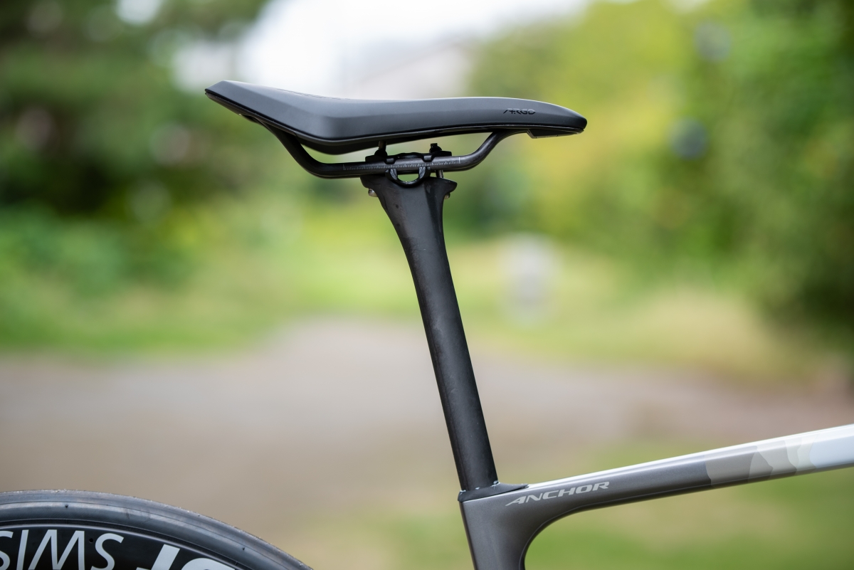 空力性能と快適性を両立すべくシートステーを下に配置する設計となっています。