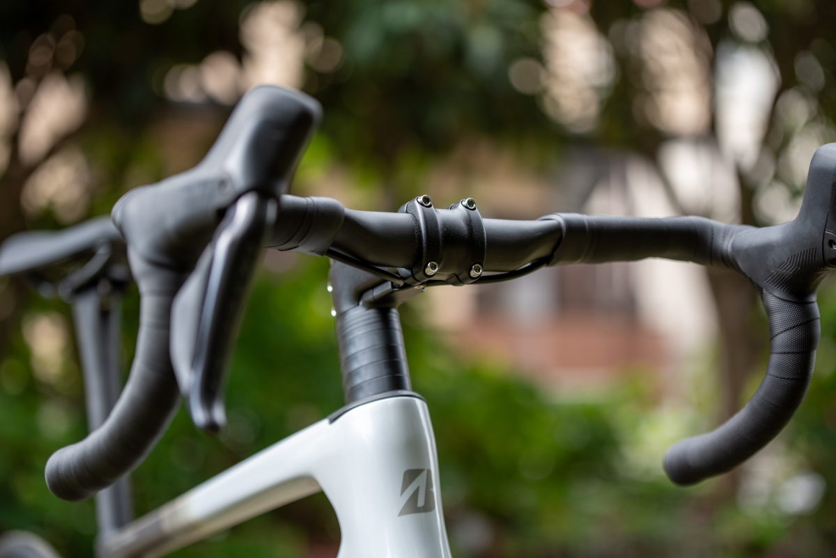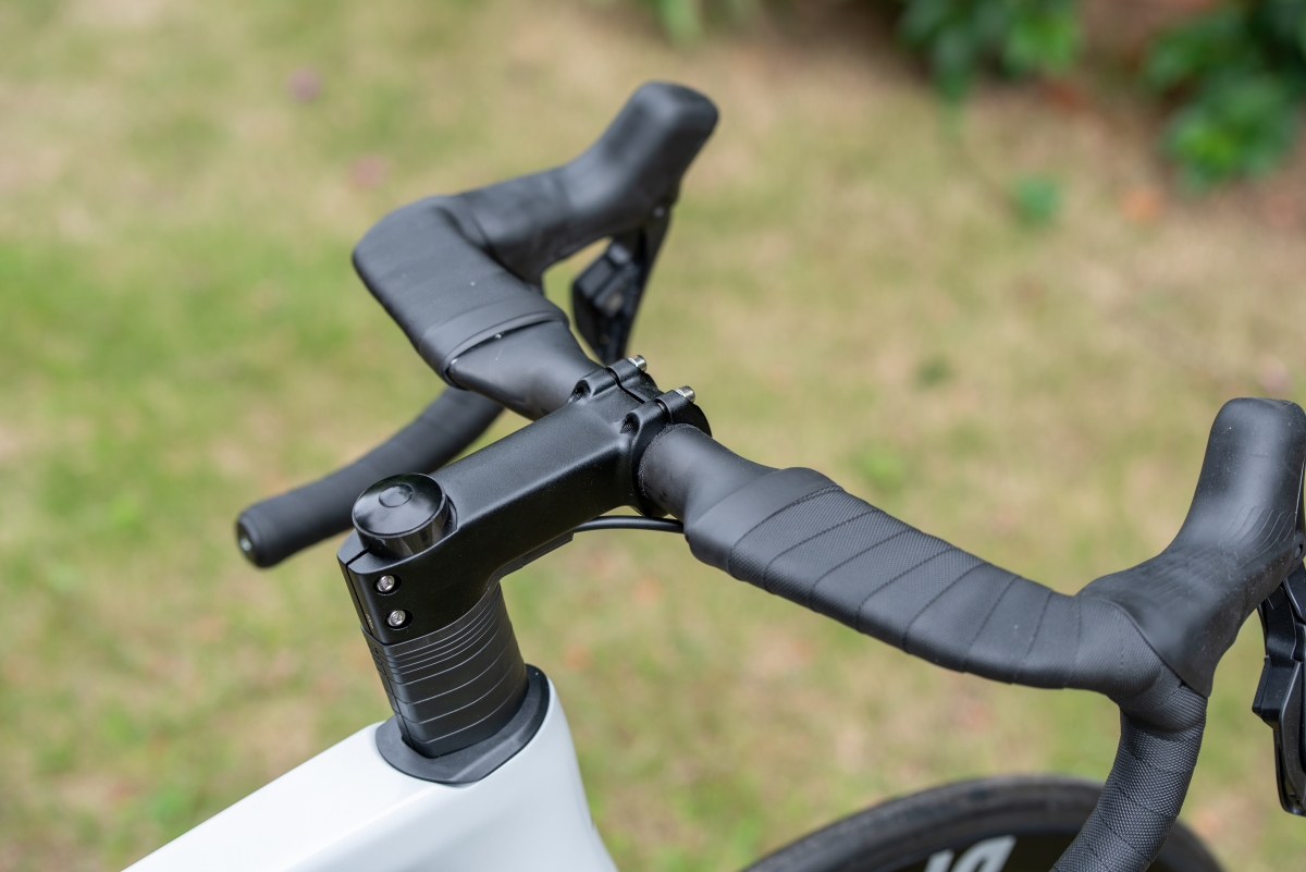 ハンドルにはRP9に使用されているエアロカーボンハンドルが採用。振動吸収性と空力性能の底上げを踏まえての採用ですが、ここまでのカーボンパーツを使用して100万円を切るのは海外メーカーではなかなか出来ない業です。