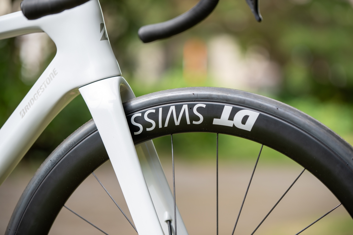 タイヤには700×28Cの高いグリップ力と路面抵抗の少ない「ブリヂストン R1X クリンチャー」を採用。