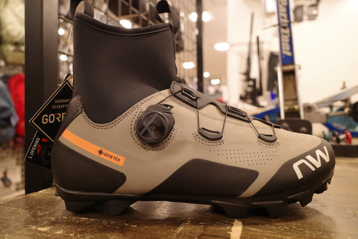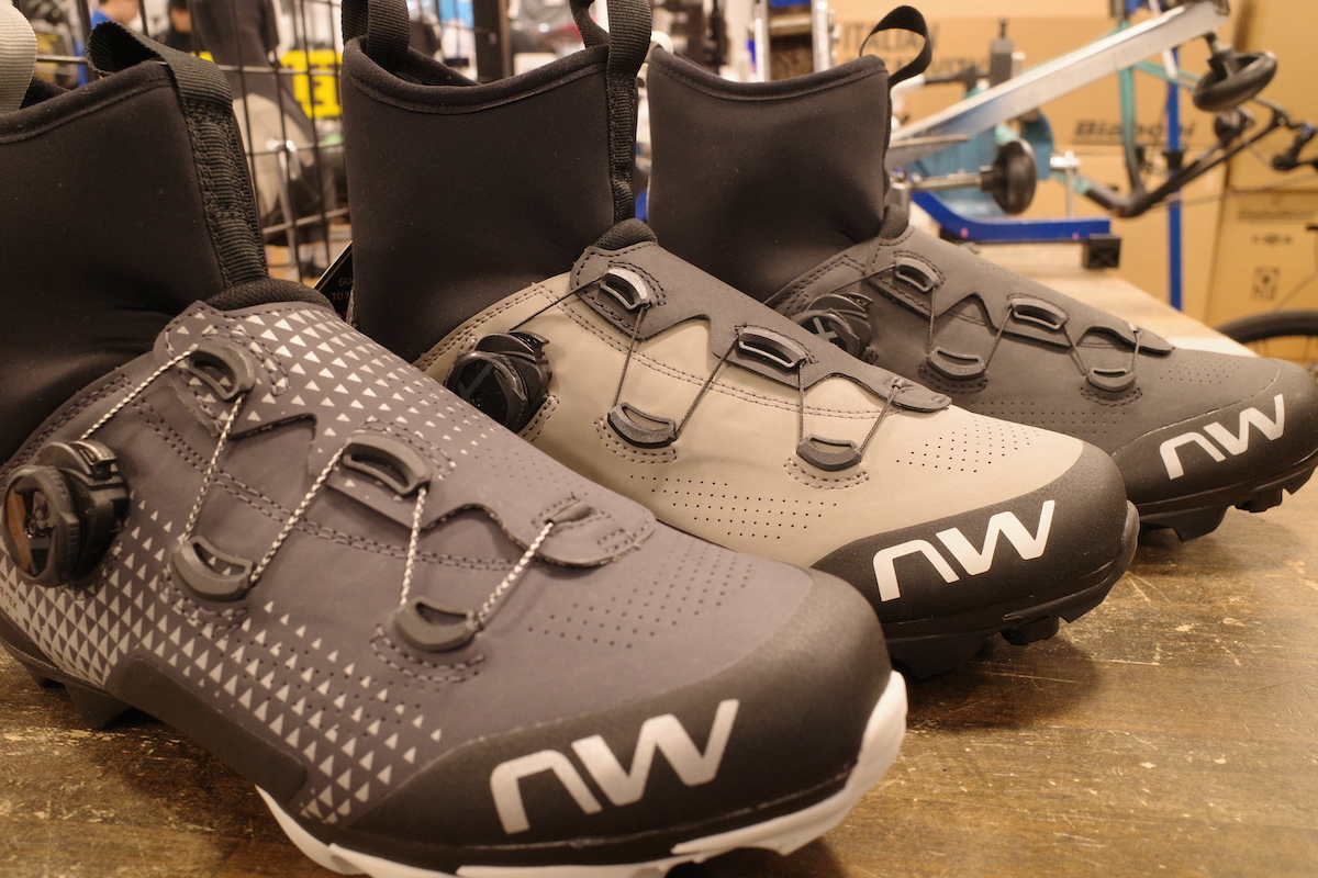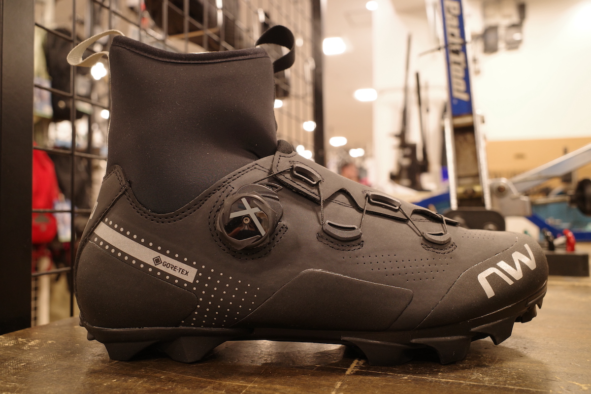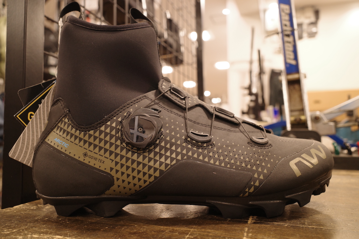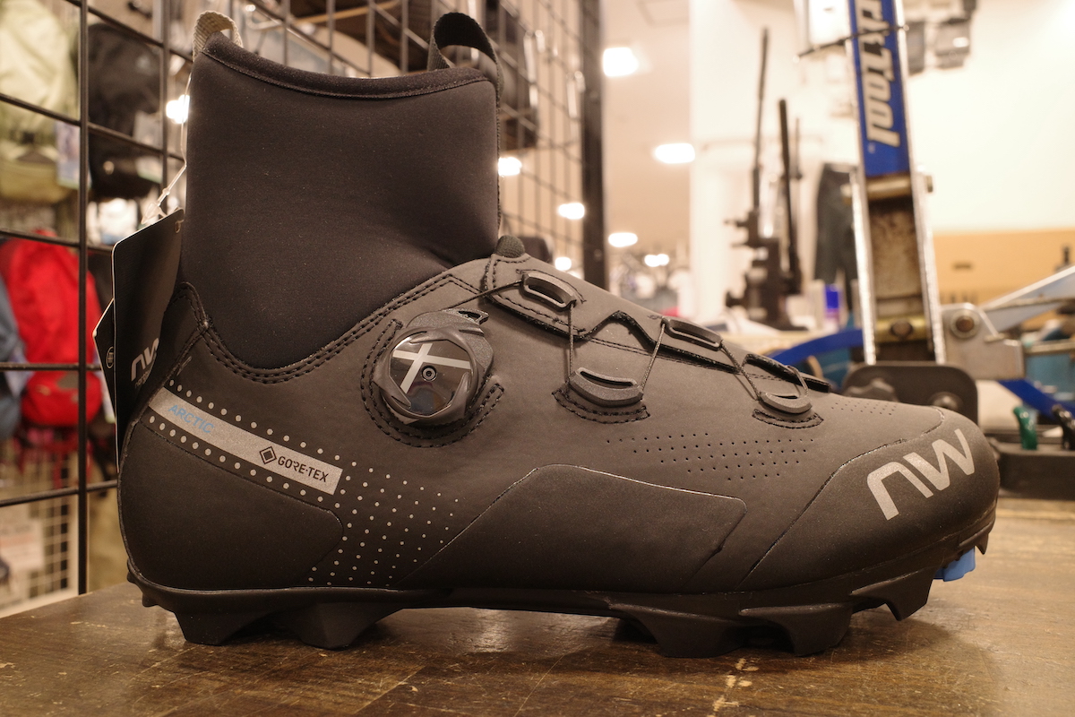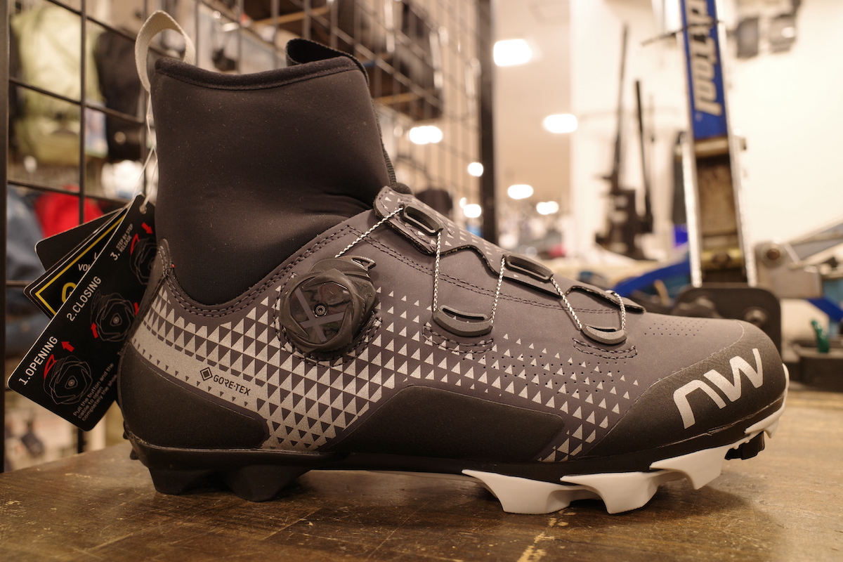 NORTHWAVEの防風防水素材使用SPDシューズ現在船橋店では、NORTHWAVEのウィンターシューズを期間限定で店頭販売中です。ソックスやシューズカバーでも冷えてしまう足先を寒風から守ります。当店でも年々問い合わせが増えており、人気の高まりを感じています。