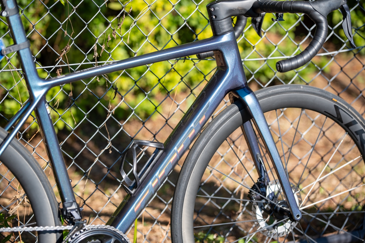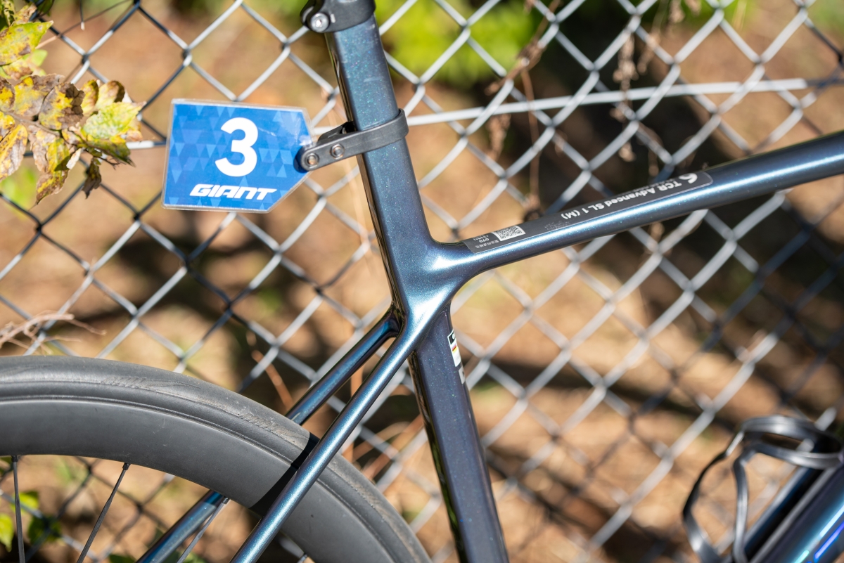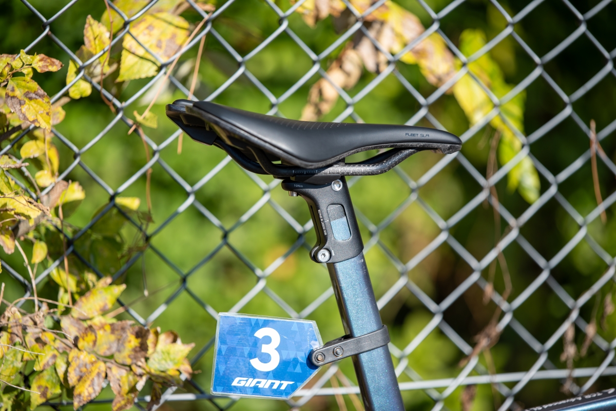 個人的に一番驚いたのはシートチューブが思っていたよりしならず、加速性、巡行に影響を与えにくいフレーム剛性になっていること。剛性が高いかどうかは今の私の脚力では専門外なので他のスタッフに任せるとして、個人的には剛性の硬さに達する前に気持ちよく踏み込めるバイクと感じました。インテグラルシートポストの恩恵もあり優れた快適性も得られたのでカフェライドで100kmぐらいを走ることの多い私にも合ってるフレームだと思います。150km~200kmのライドならミドルレンジの方(”GIANT TCR Advanced PRO”)が足を残しつつ走れるかも。