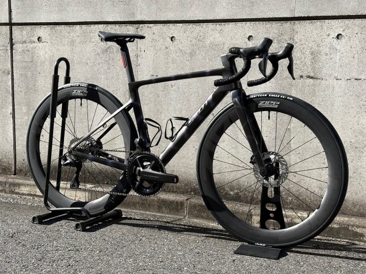 元々アッセンブルされていたホイールも非常に高性能ではあるものの、試乗の際にテストホイールとして常設している404 FCを取り付けたADDICT RCのフィーリングに度肝を抜かれてしまったとのこと。