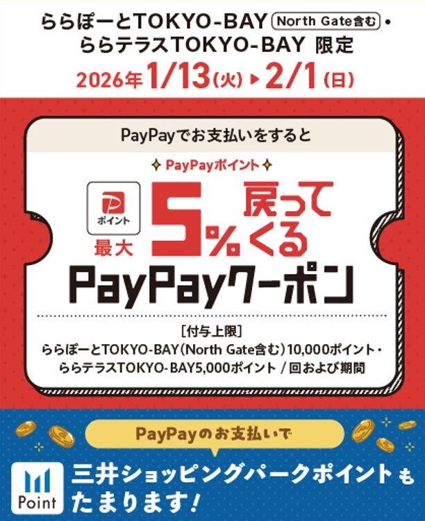 対象エリア:ららぽーとTOKYO-BAY(North Gate含む)、ららテラスTOKYO-BAY、もちろんワイズロード船橋店も対象!!