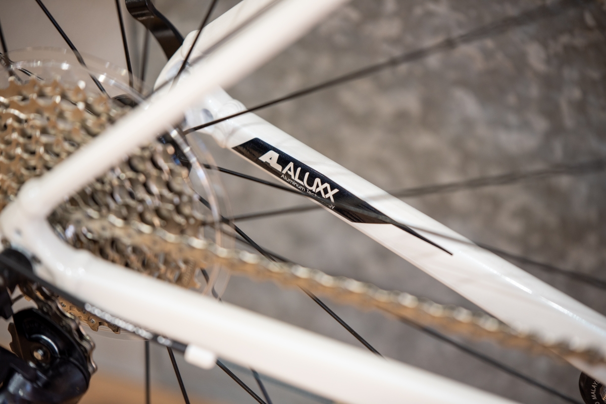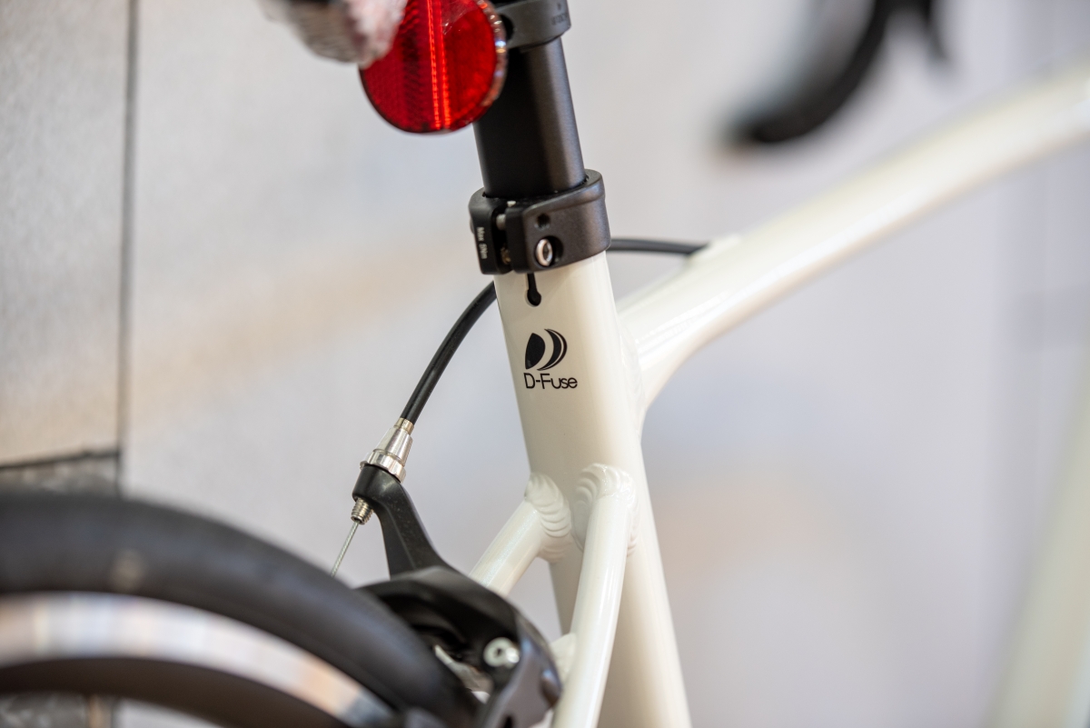 このモデルの特徴はやっぱりフレーム。ALUXXグレードのアルミフレームで軽くて耐久性も併せ持つ優れもの。D-Fuseシートポスト(D型形状のシートポスト)で路面からの衝撃をやわらげて快適性の向上に貢献。この組み合わせによりエントリーロードながら疲れにくいライドが実現しています。
