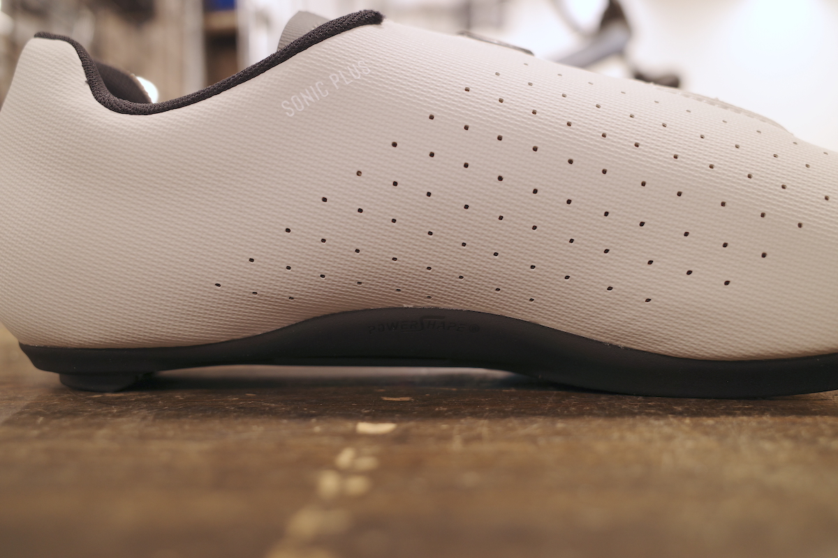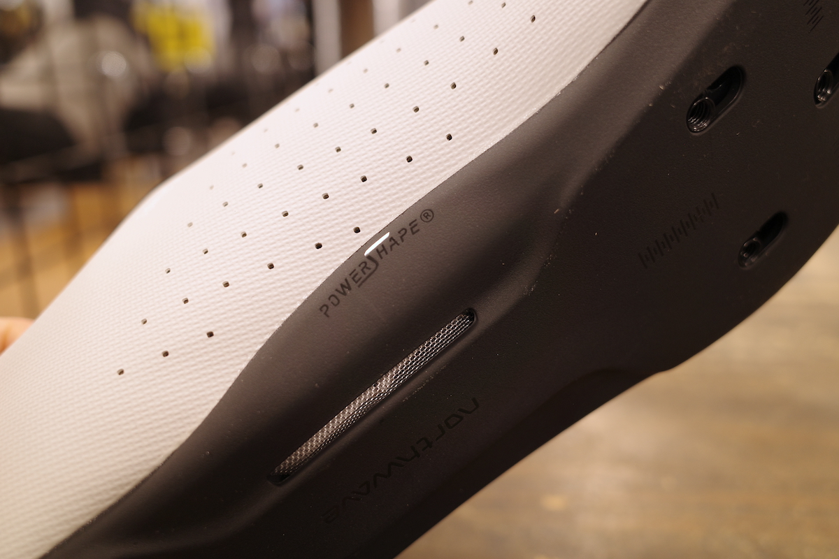 土踏まずのアーチを集中的に支える「パワーシェイプシステム」が足の安定性を高め、長時間のペダリングでもブレのない効率的な走りをサポート。