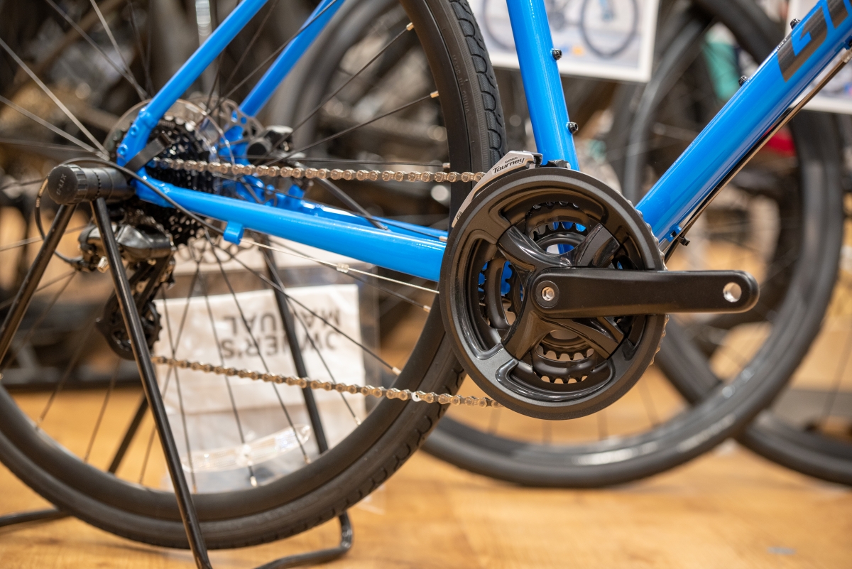 変速は幅広いシーンをカバーする3×8速の24段変速で構成されております。太いタイヤ(700×32C)が装着されているため安定性も抜群。