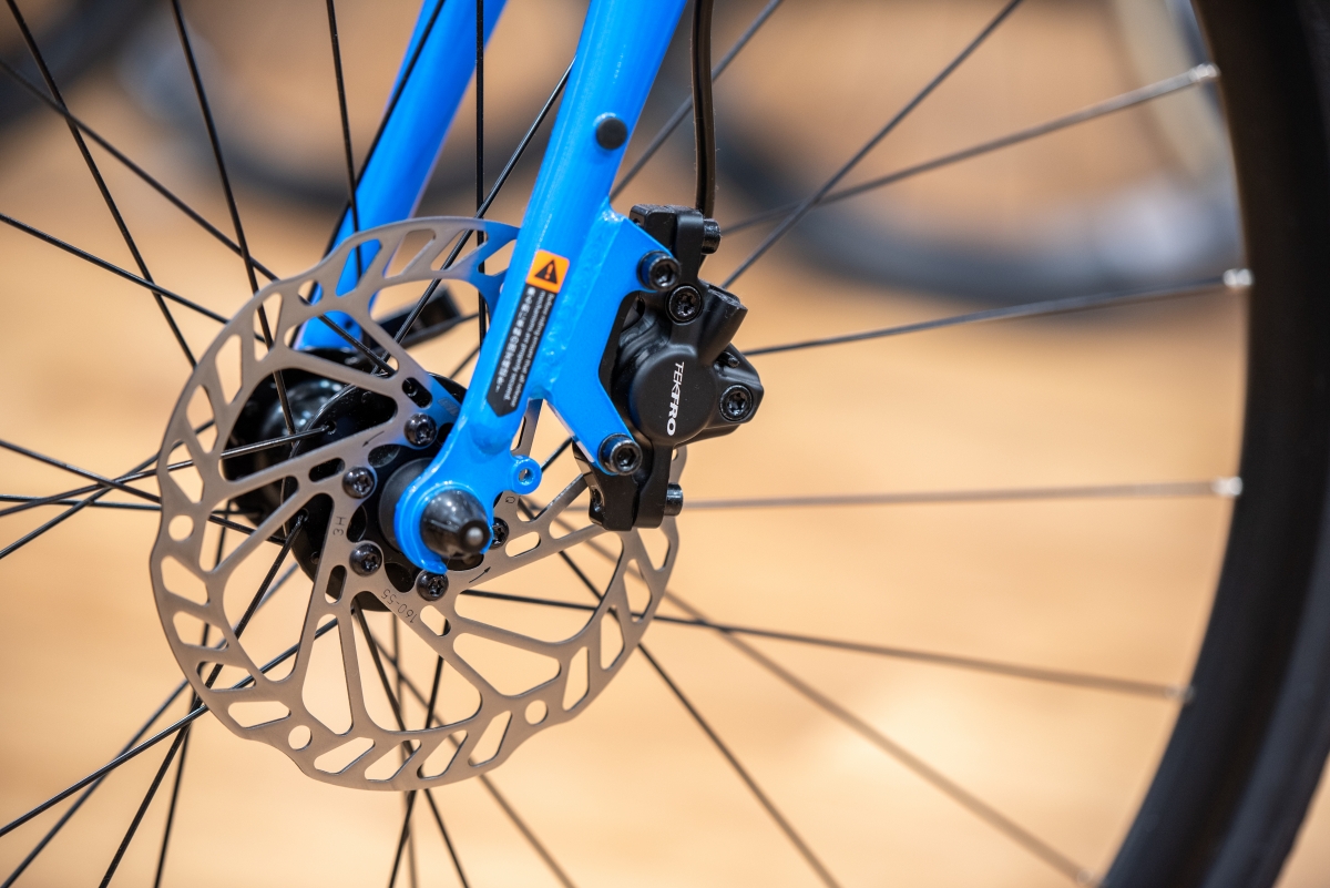 冒頭でも紹介していますが、ブレーキシステムはVブレーキではなく油圧ディスクブレーキを採用。Vブレーキに比べて部品点数が増えるためコストはかかりますが安全性の向上が見込めます。普段のライドだけでなく雨の日のライドも手助けしてくれる良き相棒になるでしょう。