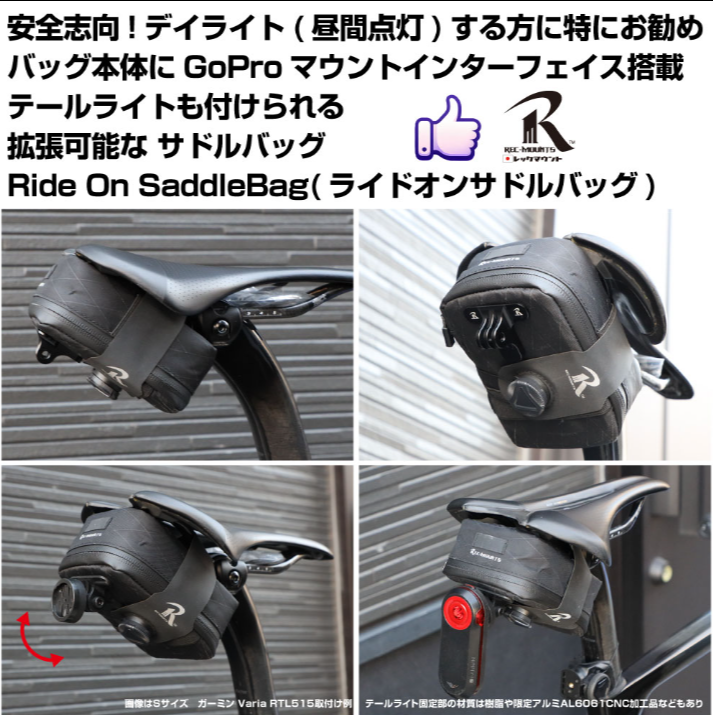 そんな懐の広いマウントメーカーより満を持して登場したのがサドルバッグです。さらにリアライトや昨今増えているレーダー付リアライトなどの取付も視野に入れたサドルバッグとなっており、見た目と使いやすさの両立がマッチした商品となっています。