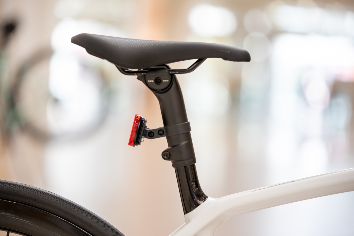 フレーム形状は上位モデルのSLRと同様となっているため軽さだけでなく、快適性や空力性能も考えています。