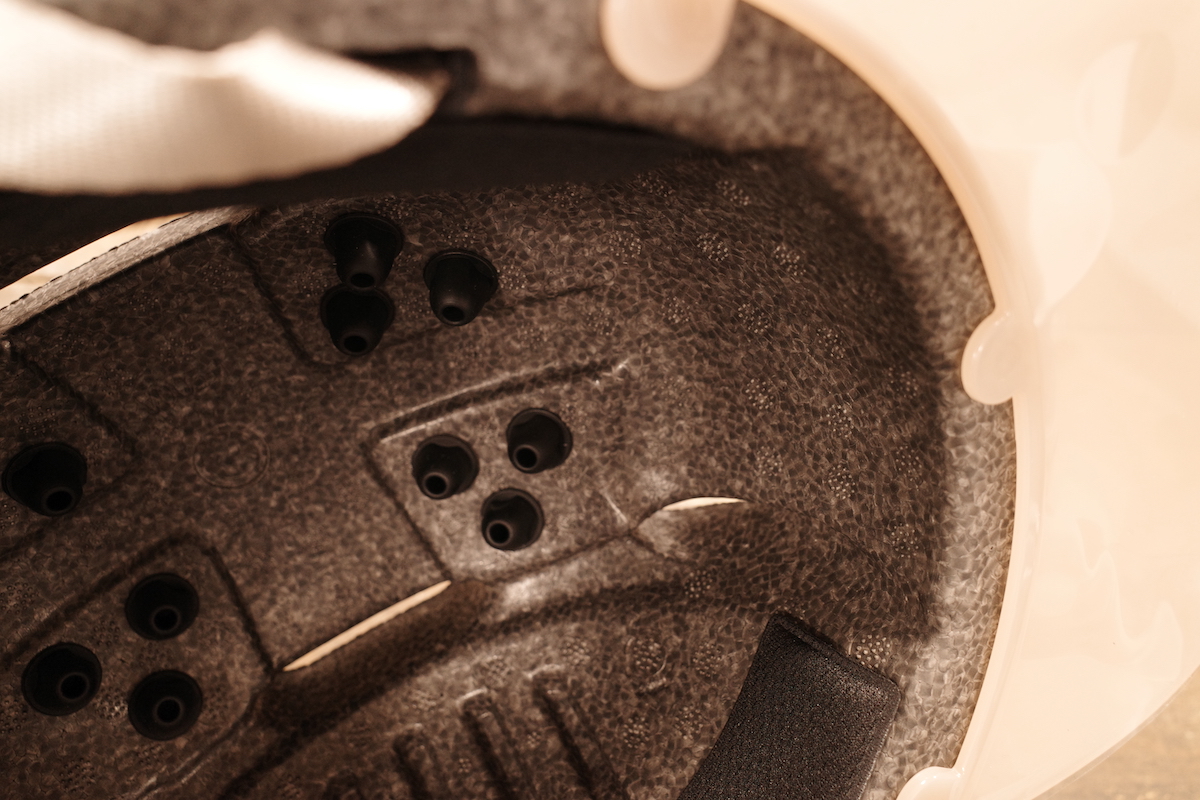 「ポニーテールライン」と名付けれた結んだ髪が干渉しにくいフォルム。さらに、ヘルメット後方に設置されたフィット調整のヘッドバンドを一般的な位置より下げることにより、外に髪を出しやすく設計しています。