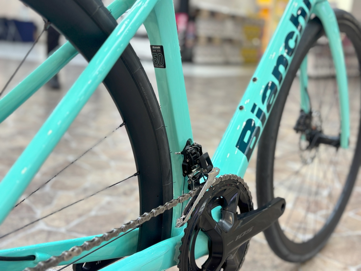 今回はBianchi INFINITOを紹介していきたいと思います。この自転車はオールラウンドロードバイクと呼ばれるジャンルのバイクで、よくオールロードとも呼ばれている物になります。簡単に言うとグラベルバイクとロードバイクの良いとこ取りのような物で、グラベルバイクのようながっちりとした安定感とロードバイクのような振りの軽さを持っているバイクです。比較的クリアランスが広いのでつけるタイヤを幅広く選べます。そのため、グラベルバイクに寄せることも出来ますし、ロードバイクに近づけることも出来ます。頑丈にできているうえに嫌な剛性も抑えられているので、あまり神経質にならずに、純粋に「サイクリング」を楽しむことが出来ます。