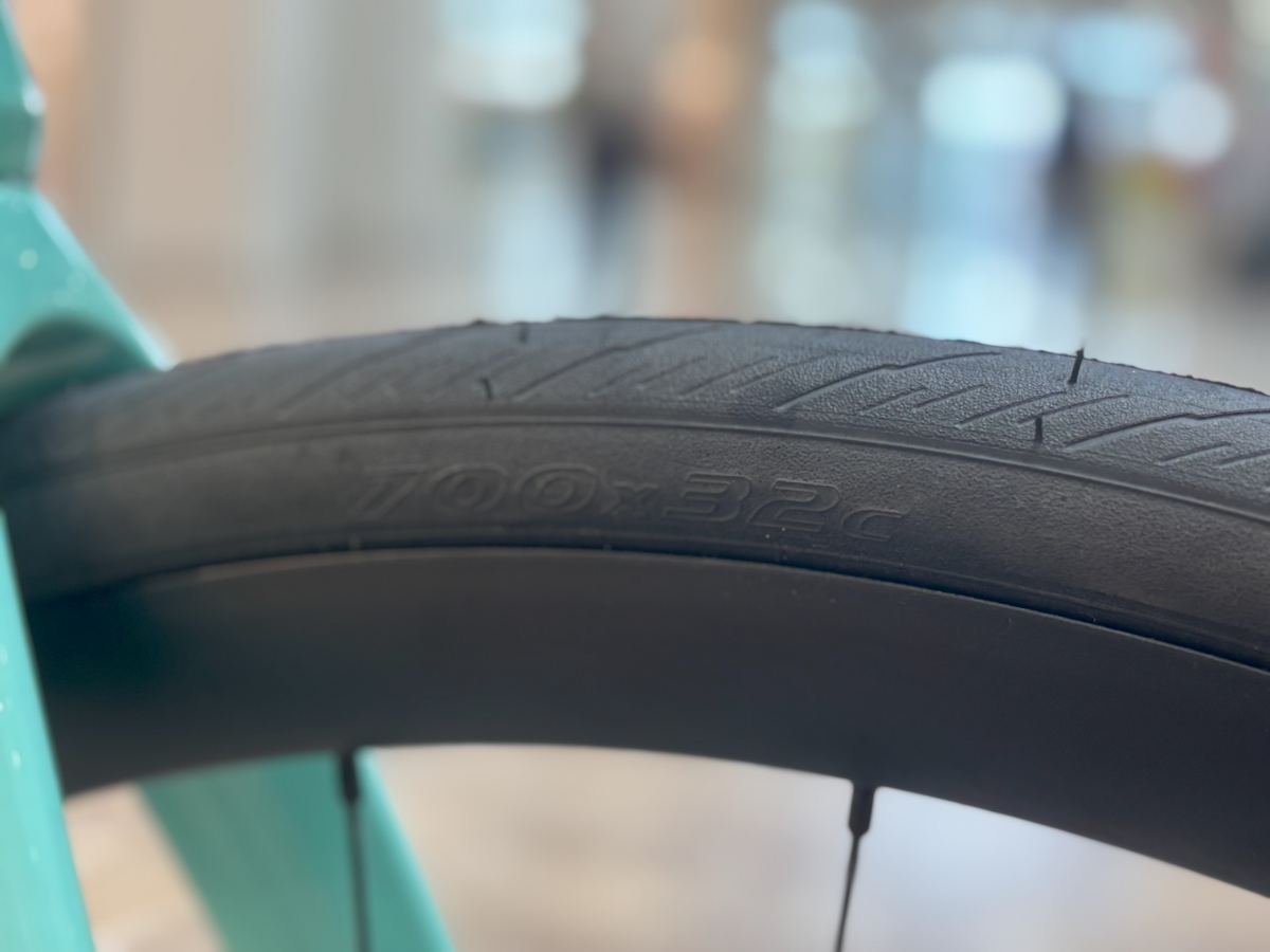 デフォルトで32Cのタイヤが付いてきます。タイヤの銘柄はPIRELIのP7™ SPORT。頑丈なタイヤなのでアグレッシブな走行も可能となっています。