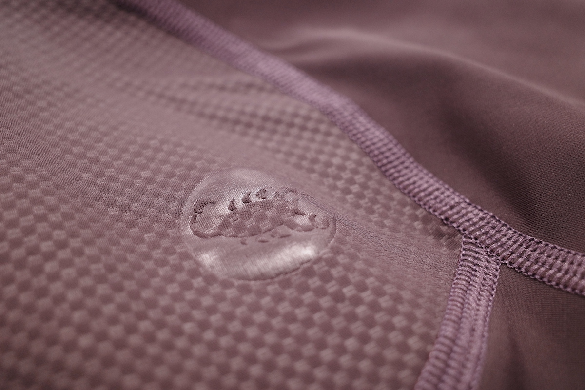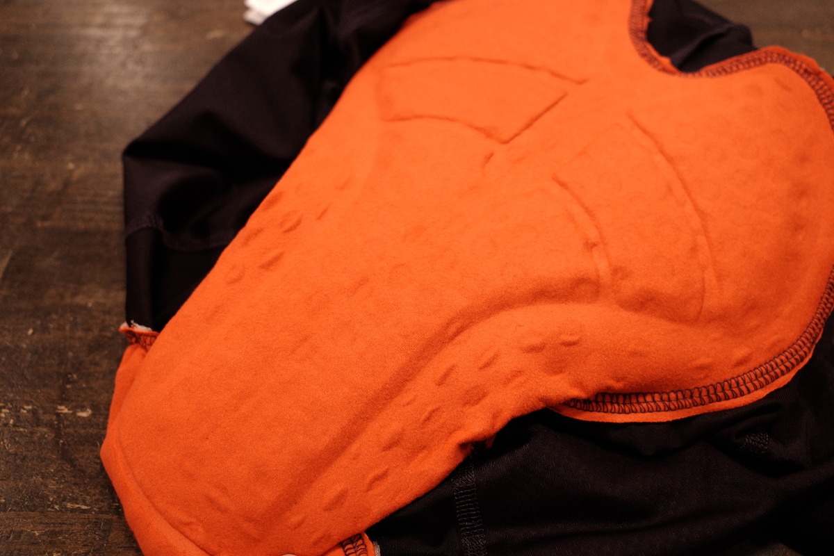 メイン素材には「Vortex V2」を使用。立体感のあるテクスチャーで空力性能を向上。内股には「Affinity Pro Lycra」を。優れたストレッチ性能と筋肉へのサポート力を発揮。