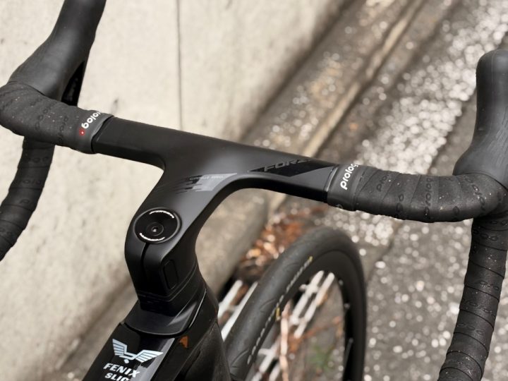 ケーブルをフル内装するF-Steererと専用コックピットによりケーブル類は完全内装化を実現。コックピット周辺で発生する空気抵抗を低減。快適性と剛性を兼ね備え、ドロップを5°フレアさせることでエアロポジションが取りやすい設計になっています。