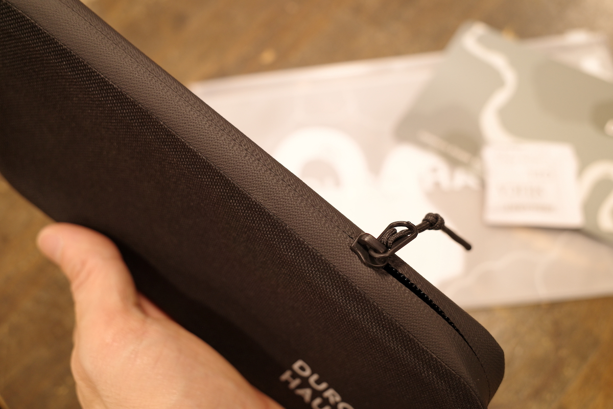 開口部ももちろん止水ジップ仕様。取り扱いのしやす丁度いい厚みです。